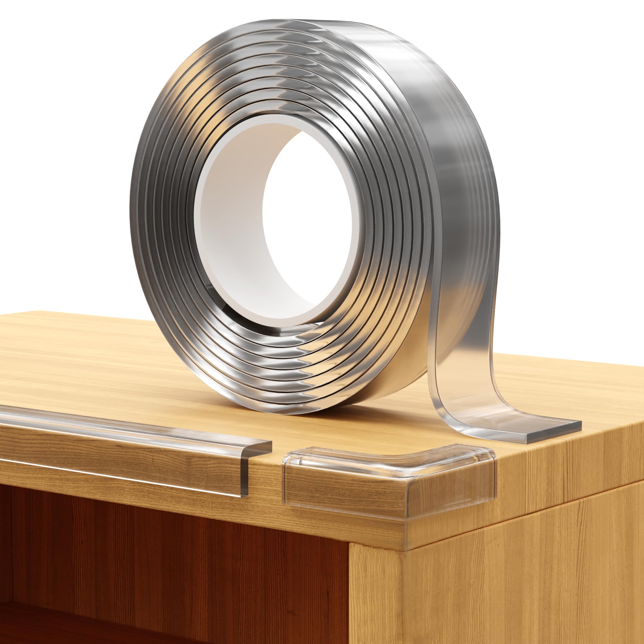 Furniture Edge and Corner Guards | 20.4ft Protective Clear PVC Cushion | 18ft Bumper 8 Adhesive Childsafe Corners | Baby Child Proofing Set NonToxic|Baby & Toddler