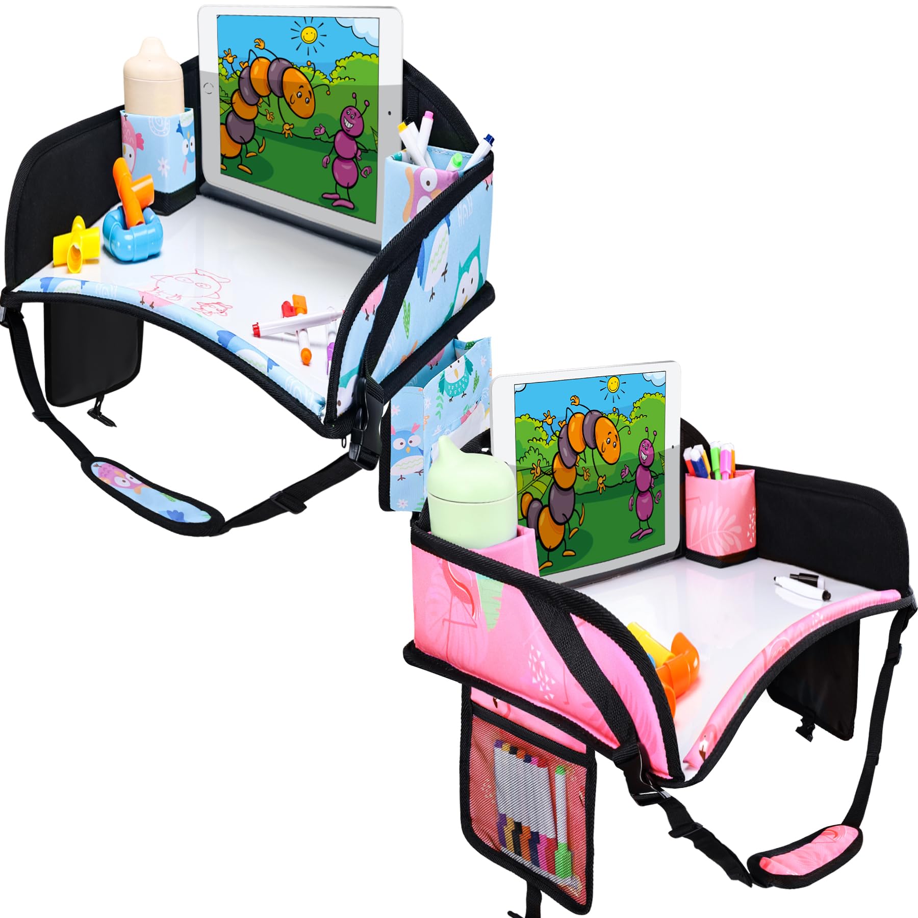 WENRENER 2PCS Kids Travel Tray, Car Seat Tray for kids Travel, Toddler Road Trip Essentials With Drawing Kit, Toddler Lap Desk Organizer for Car,|Baby & Toddler