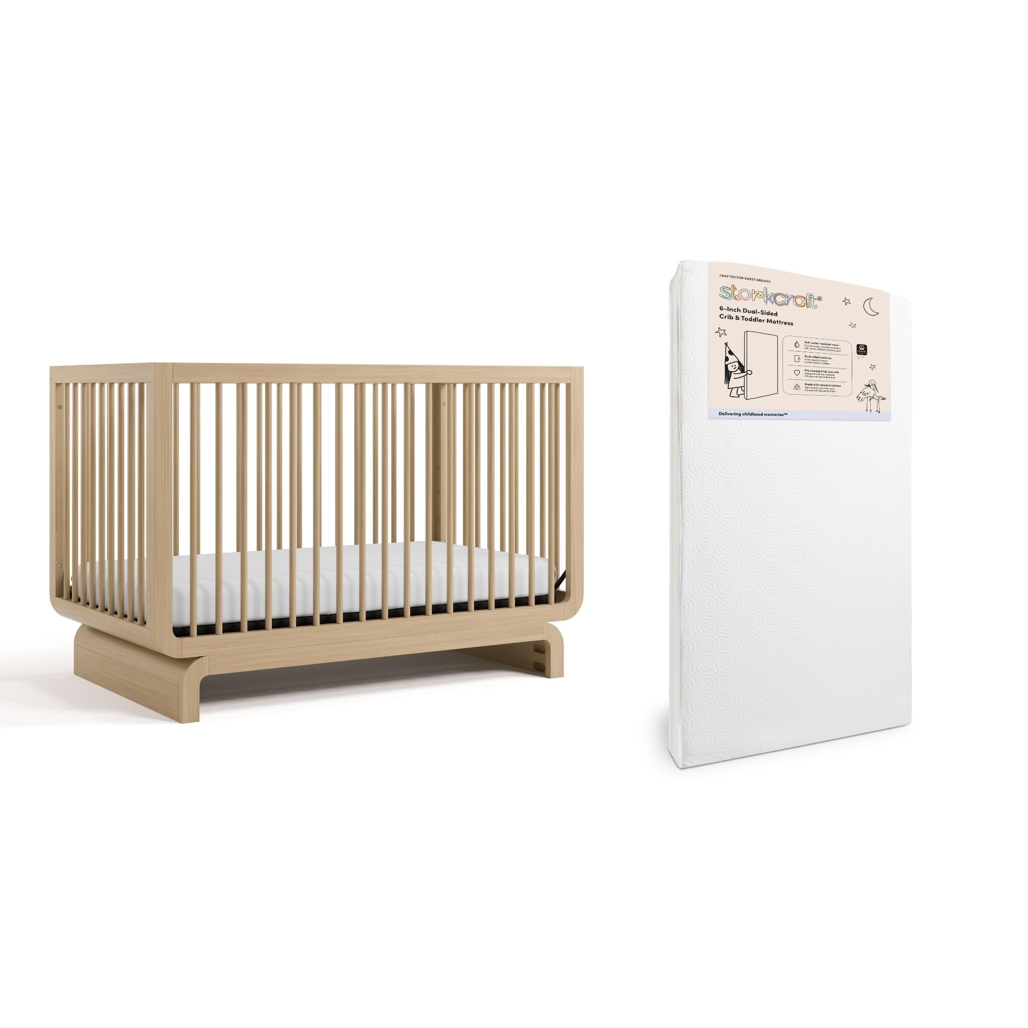 Storkcraft Santorini Convertible Crib with Toddler Guardrail & Storkcraft 6-Inch Grow-with Me Premium Waterproof Dual-Sided Baby Crib & Toddler Bed|Baby & Toddler