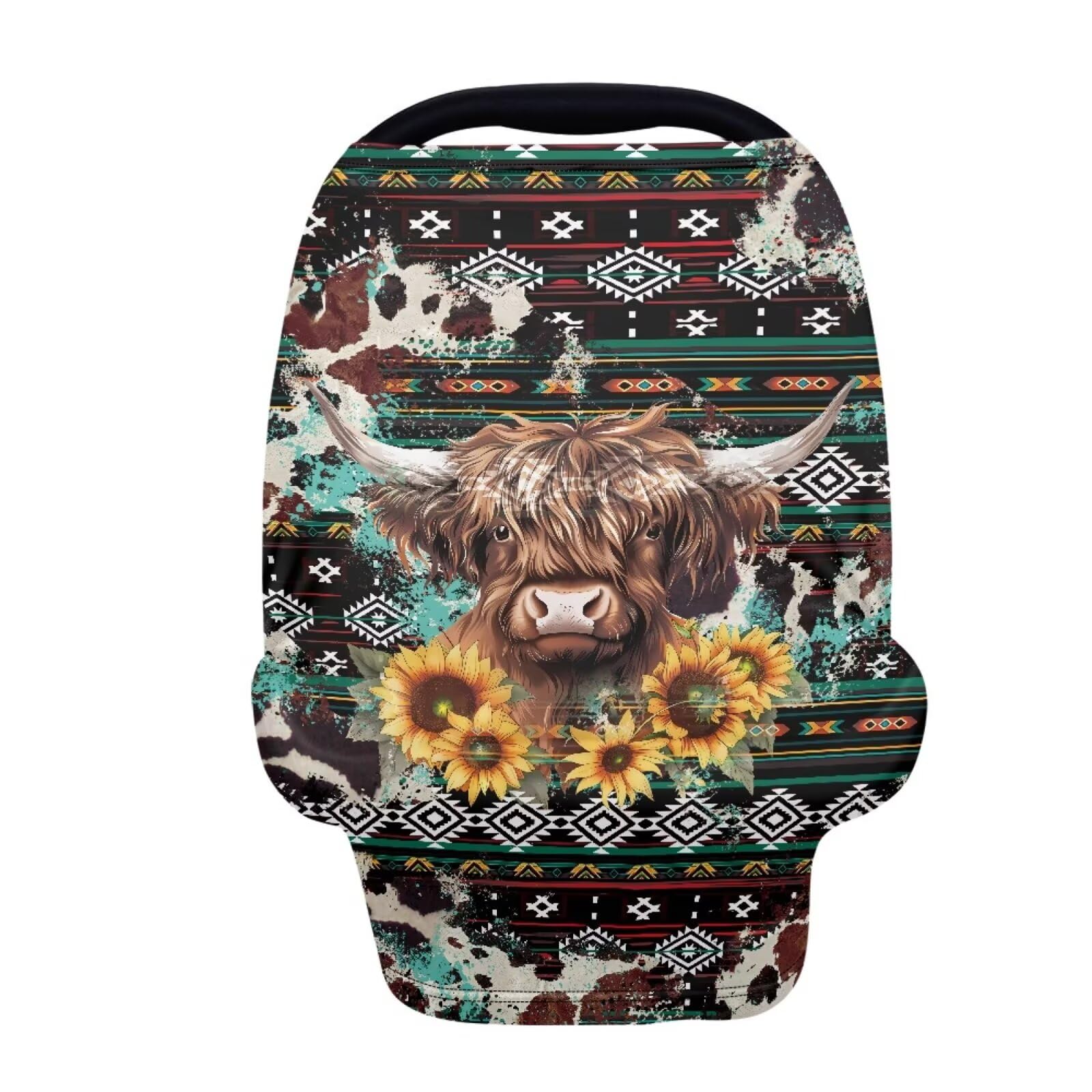 JOAIFO Highland Cow Print Baby Carseat Cover Sunflower Nursing Cover Fashion Carseat Covers Baby Nursing Cover Toddler Boy Girls Breastfeeding Canopy|Baby & Toddler
