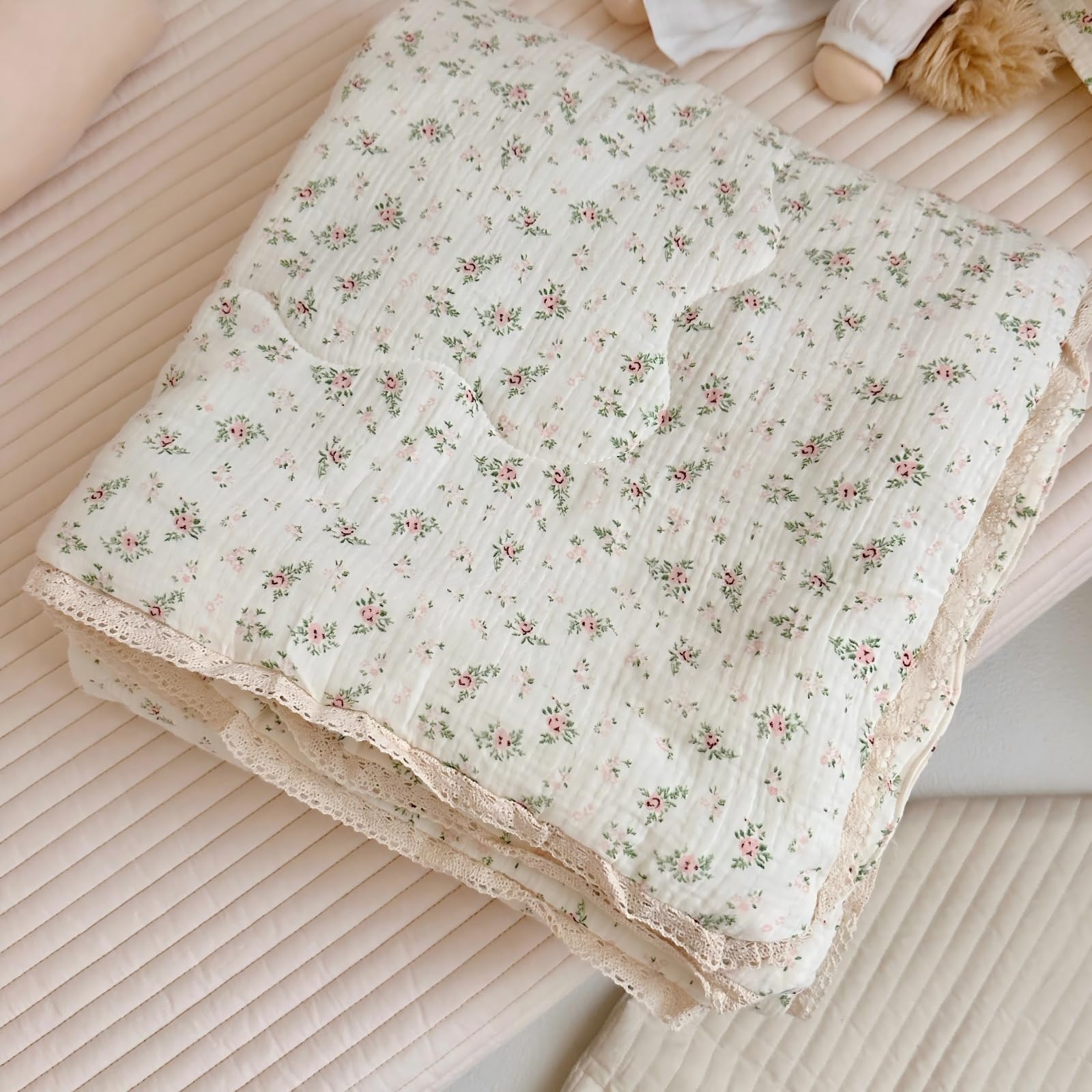 BuLuTu 2-Layer Muslin Cotton Kids Quilt for Twin Bed, Soft Gauze Blanket Lace Edged, Girls Boys Toddler Comforter, Breathable Lightweight, Pomegranate|Baby & Toddler