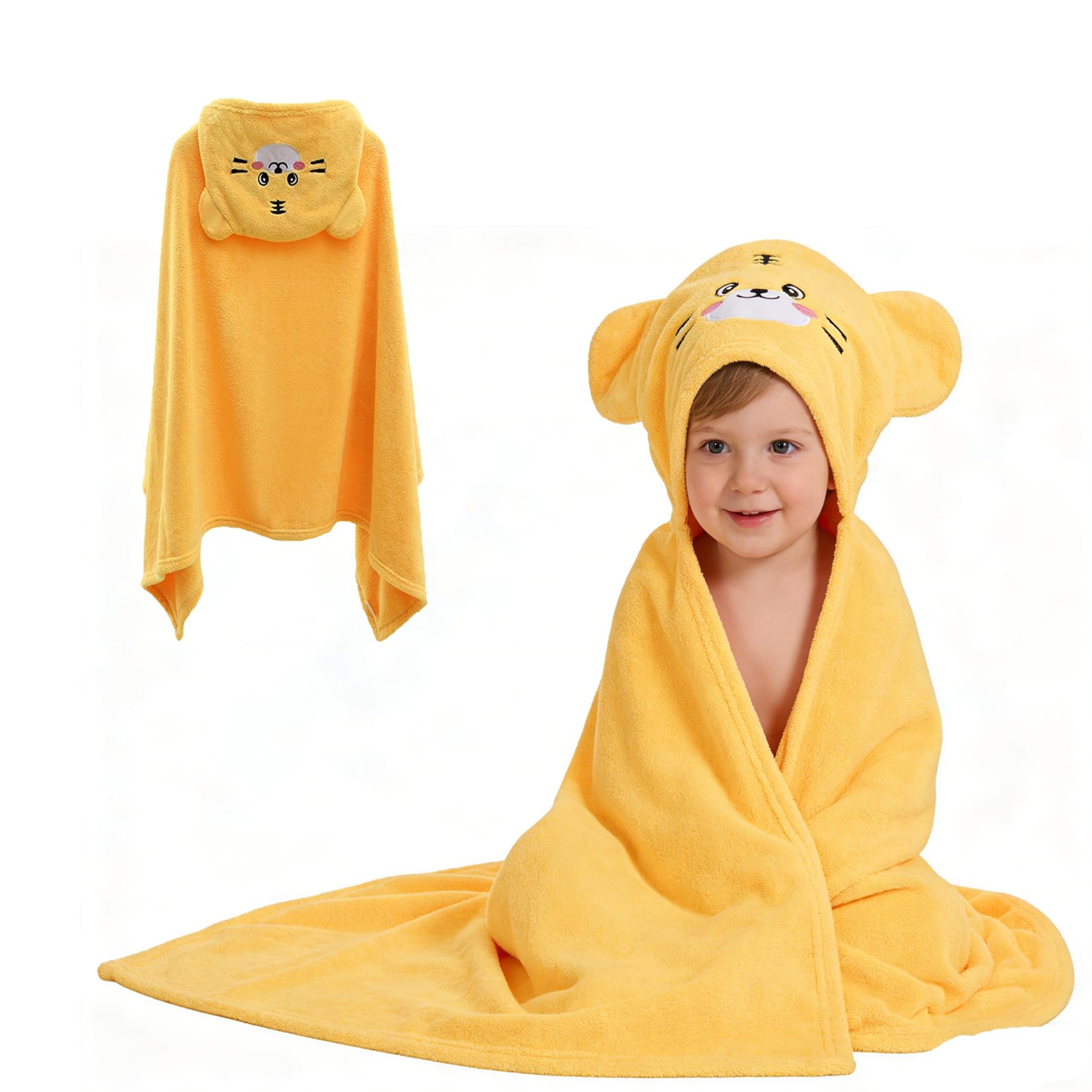 IIFaryMes Toddler Baby Bath Towel with Hood 27.5"X55" Ultra Absorbent Soft Bathrobe Blanket, 0-6 Years Infant Shower Towel for Girls & Boys(Sunset|Baby & Toddler