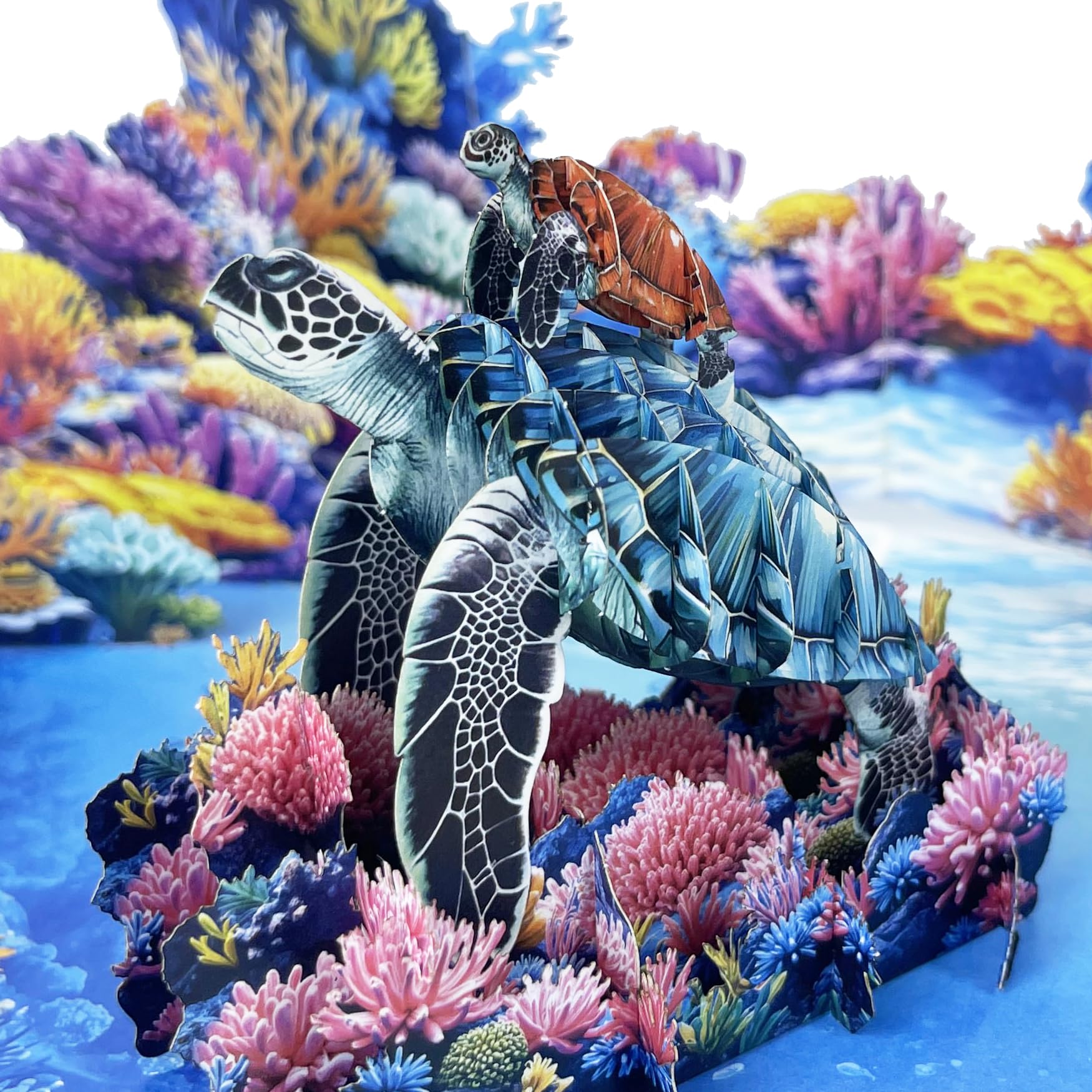 PQDGlobal 3D Sea Turtle Popup Card - Handmade Ocean-Themed Paper Art for Birthday, Anniversary, Christmas, Father’s Day - Unique Greeting Card Gift|Baby & Toddler