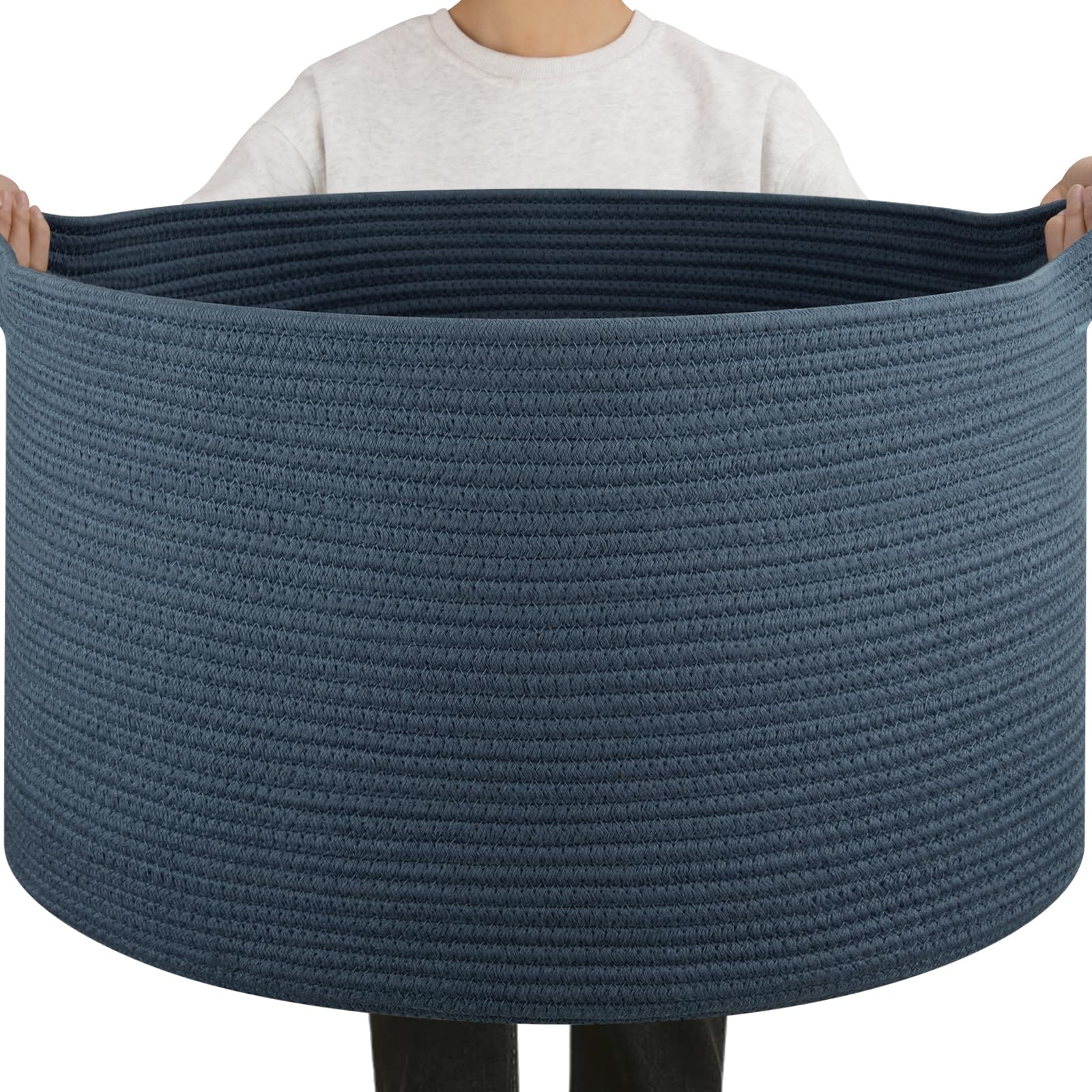 OIAHOMY 90L Blanket Basket for Living Room, Large Basket 23" x 23" x 13" with Handle, Laundry Hamper for Blankets, Pillows, Toy Storage for Kids, Dogs|Baby & Toddler