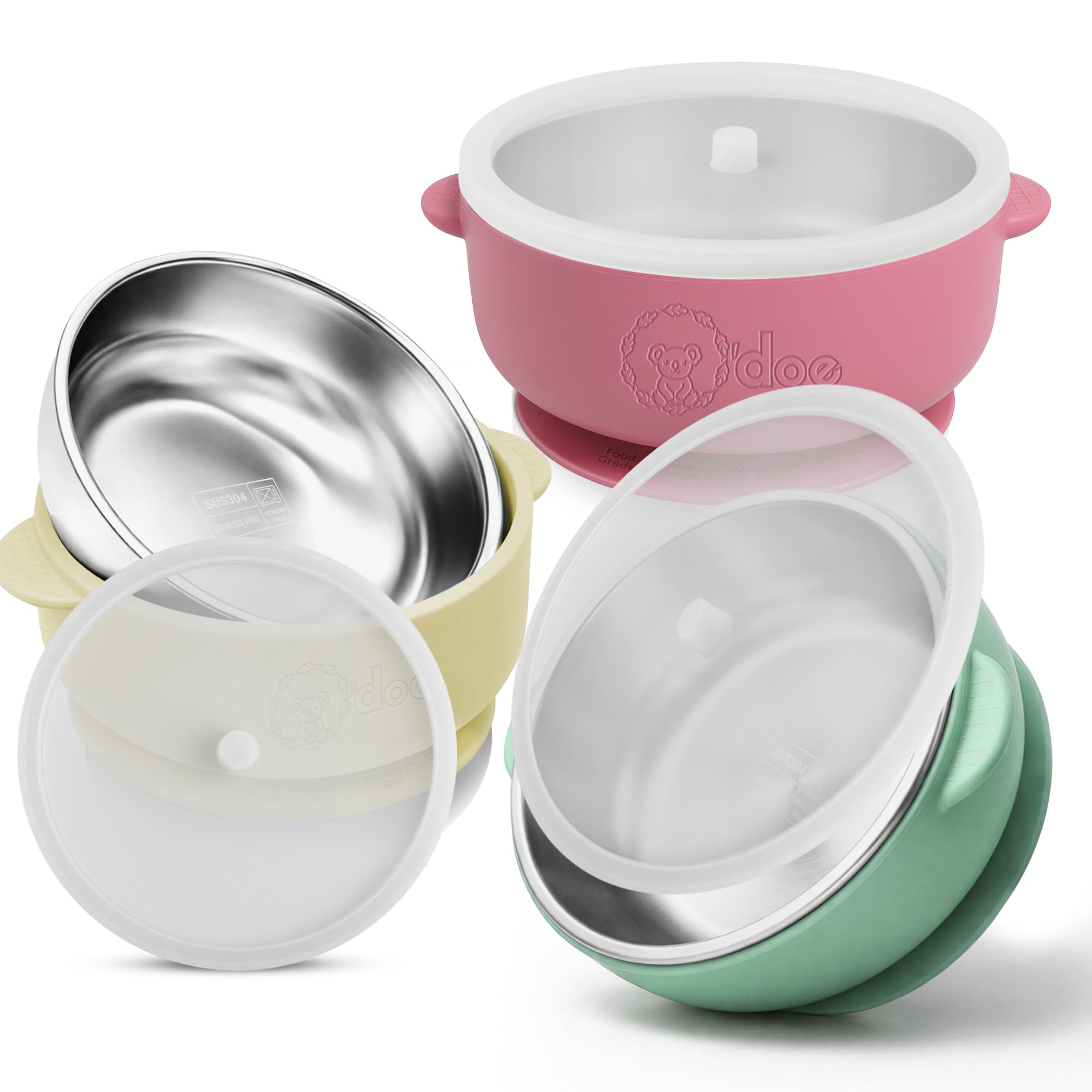 o'doe Suction Bowls for Baby - Non-Toxic Stainless Steel Baby Bowls 5" with Non-Slip Removable Silicone Shell - BPA-Free Toddler Bowls (Green + Rose +|Baby & Toddler