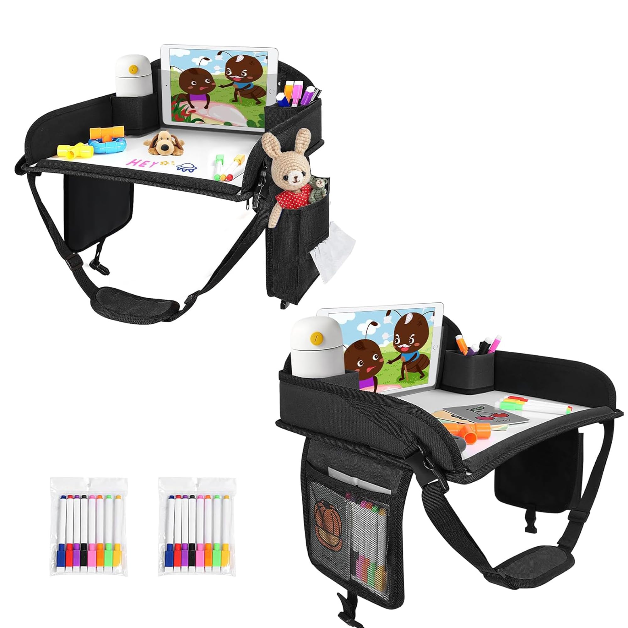UTOLOVE 2Pcs Kids Travel Tray, Kids Travel Trays for Car Seat, Road Trip Essentials for Toddler, Carseat Lap Tray with Dry Erase Board & Storage|Baby & Toddler