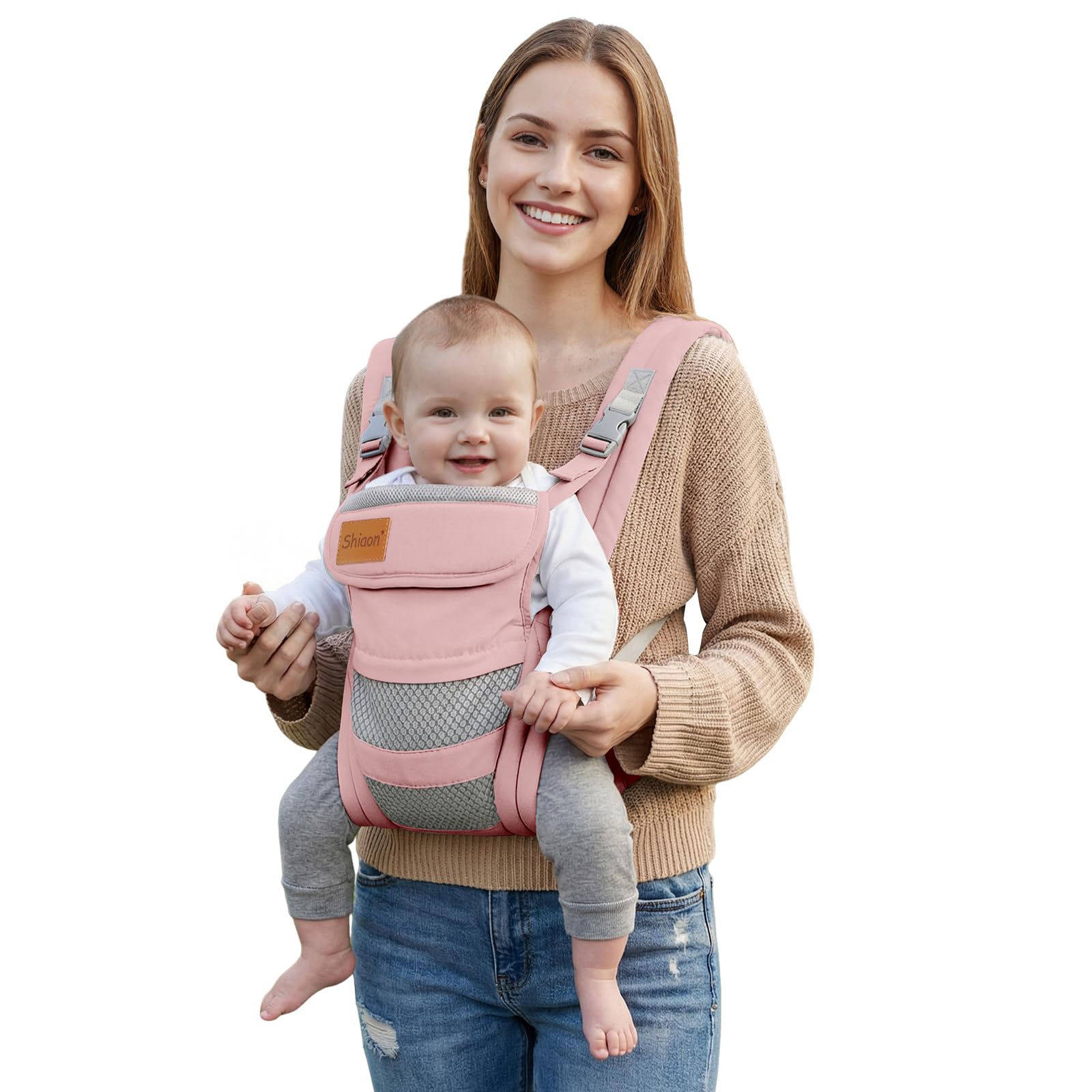 Shiaon Baby Carrier Newborn to Toddler(8-30lbs), Toddler Carrier with Adjustable Shoulder Strap, Baby Holder Carrier with Breathable Mesh Fabric, Pink|Baby & Toddler