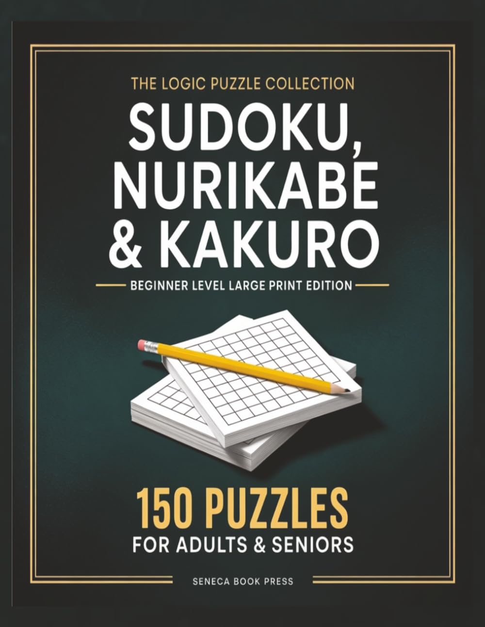 Sudoku, Nurikabe & Kakuro Puzzle Book for Adults & Seniors: 150 Easy to Medium Puzzles • Large Print, Brain Games for Focus, Memory & Relaxation (The|Books