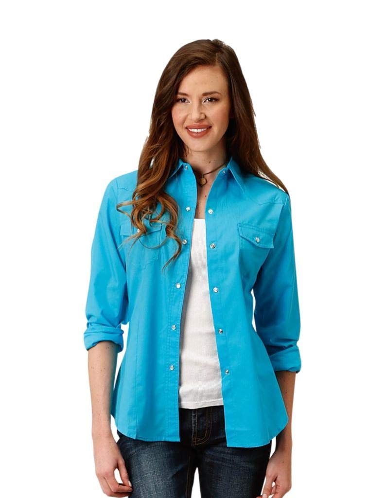 WOMENS TURQUOISE SOLID LONG SLEEVE SNAP WESTERN SHIRT|Clothing
