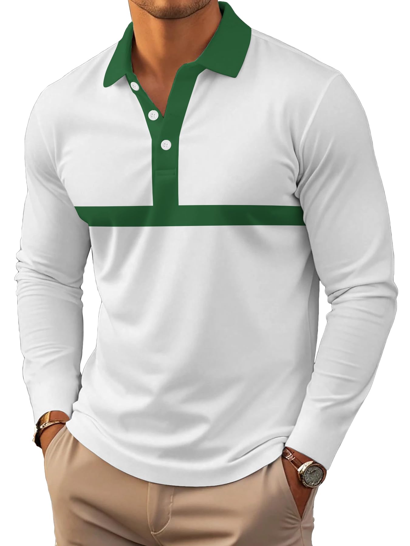 Mens Fashion Long Sleeve Polo Shirts Casual Golf Shirts Color Block Cotton Top|Clothing