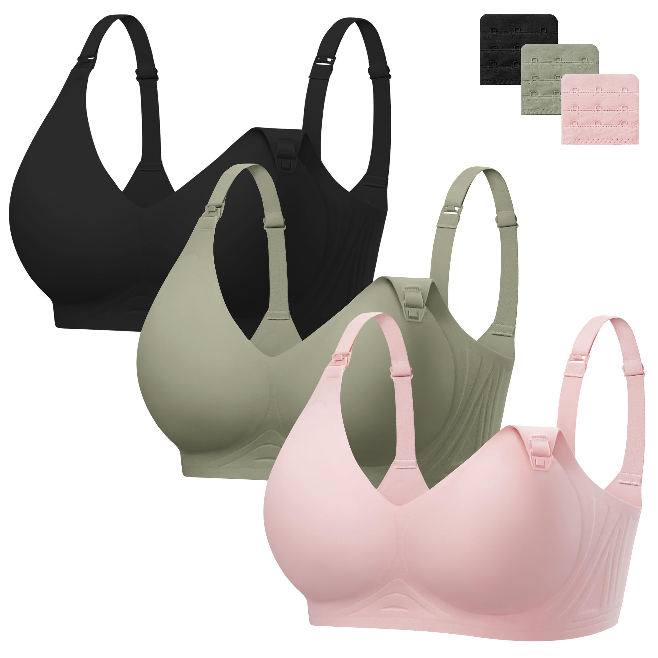 Angelhood 3 Pack Nursing Bras for Breastfeeding Seamless Pregnancy Maternity Bra Wireless Sleep Bralette with Extenders|Clothing