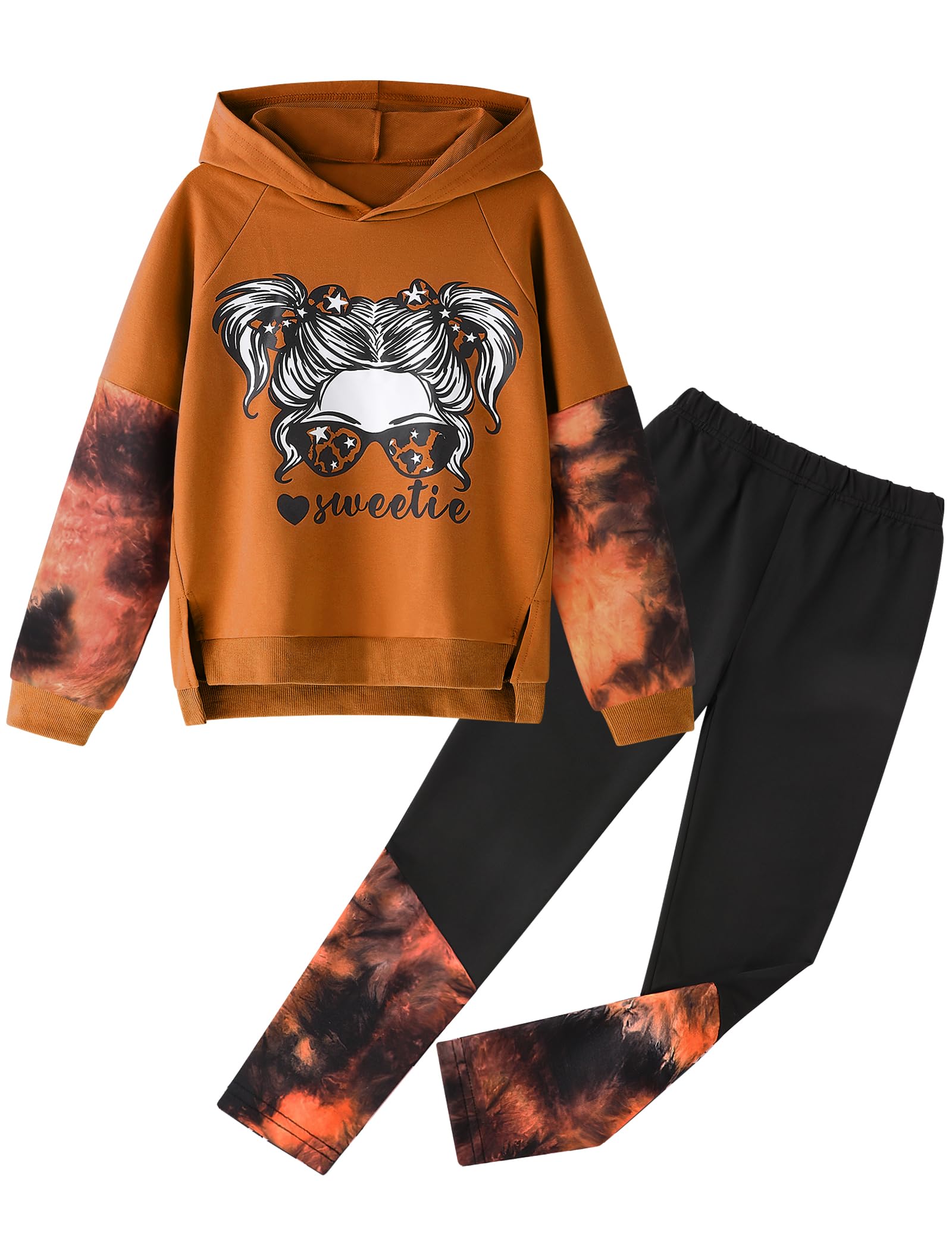 Gaupafmb Girls Clothes Cool Girl Print Tie Dye Hoodie Pullover Sweatshirt Leggings 2PC Outfits|Clothing
