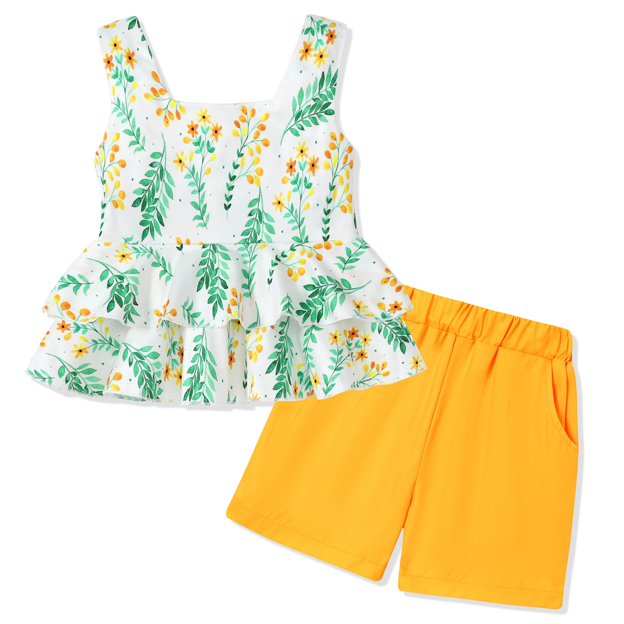 SOLOYEE Toddler Girl Clothes Summer Outfits, Sleeveless Ruffle Hem Tank Top + Shorts 2Pcs Cute Baby Girls Clothing Set 1-5T|Clothing