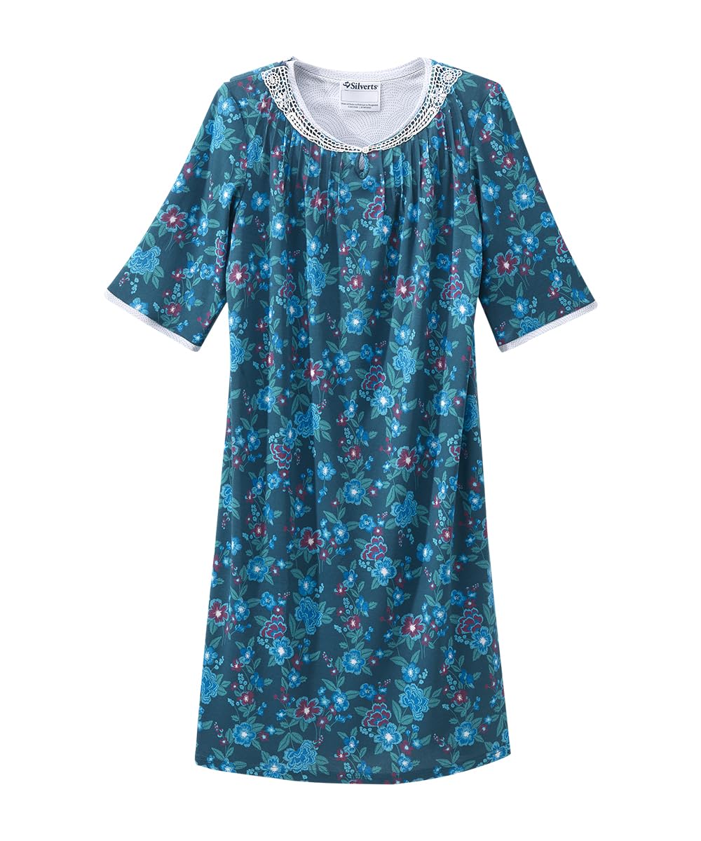 Silverts Womenâs Adaptive Clothing Open Back Knit Nightgown, Assisted Dressing Gown for Elderly, Nursing Home Wear|Clothing