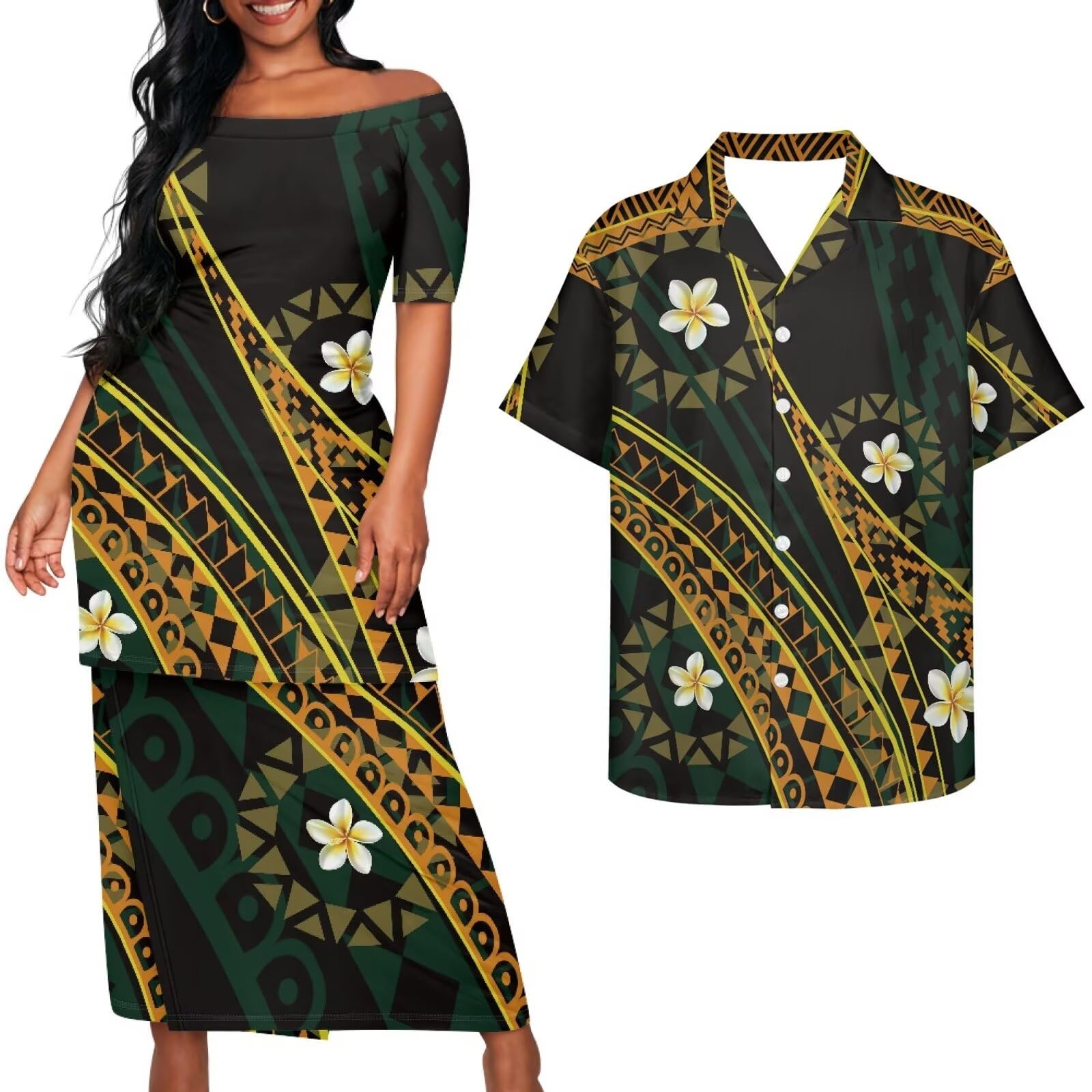 QUJUFOZY Samoa Couple Outfit Puletasi Samoa Dress Polynesian Shirts for Men Puletasi Samoan Traditional Dress Hawaiian|Clothing