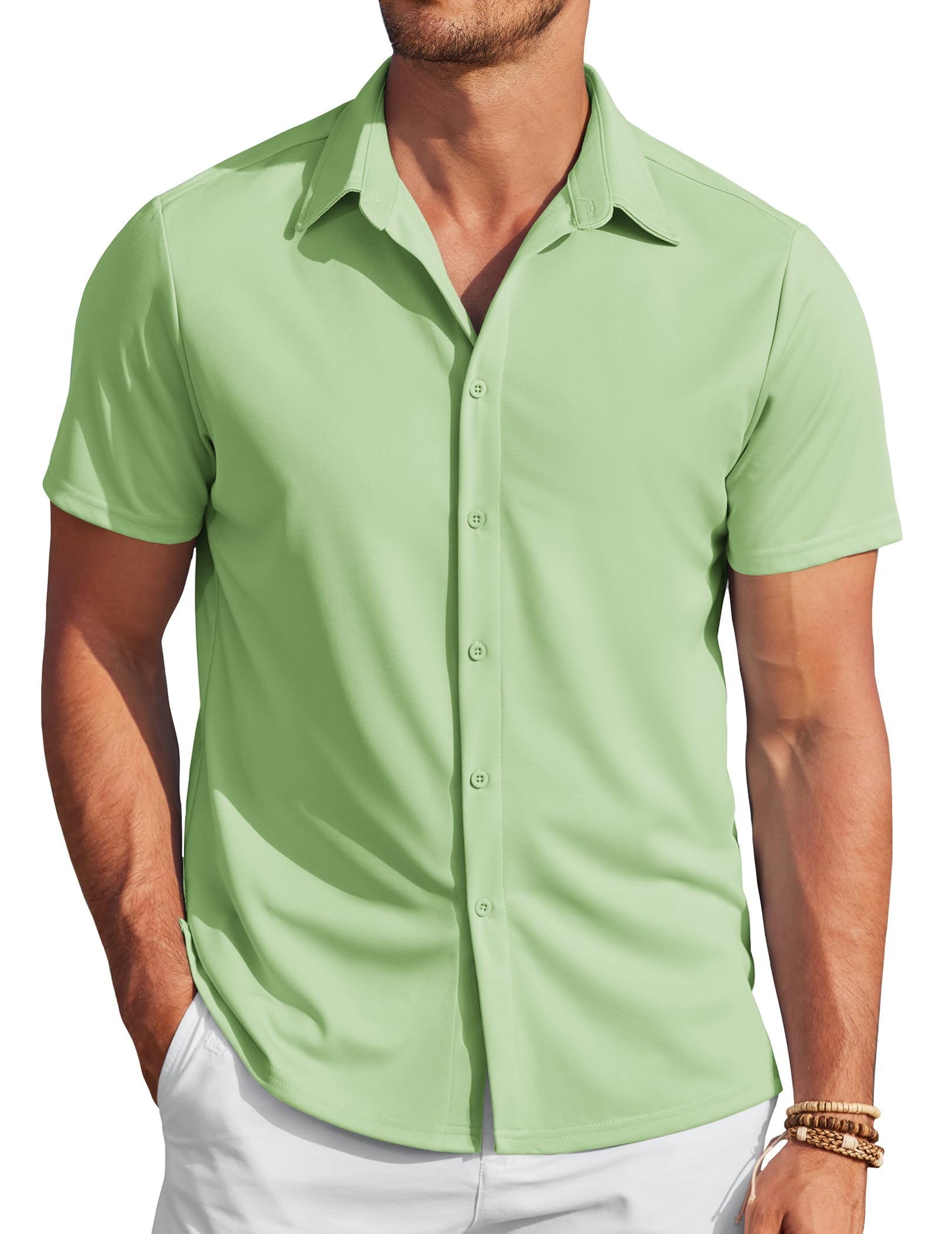 COOFANDY Mens Casual Wrinkle Free Shirts Short Sleeve Button Down Summer Stretch Dress Shirt|Clothing