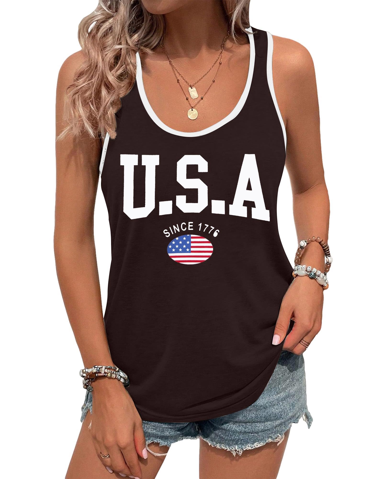 ALLTB American Flag Tank Tops Women USA Shirt Since 1776 Patriotic T-Shirt 4th of July Summer Stars Stripes Vest Tees|Clothing