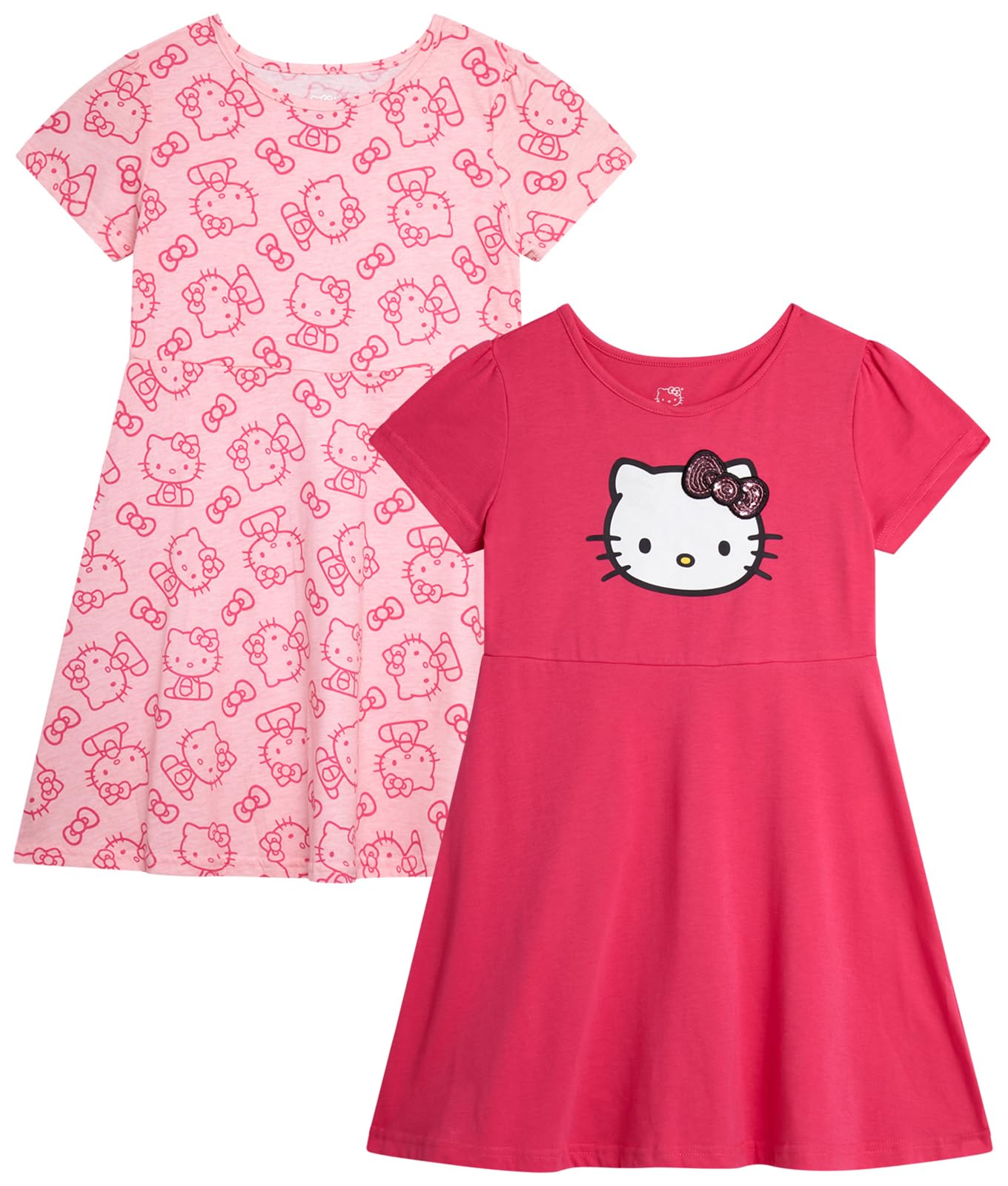 Hello Kitty Girls Dress - 2 Pack Short Sleeve Casual Toddler Girls Skater Cute Dress for Little and Big Kids|Clothing