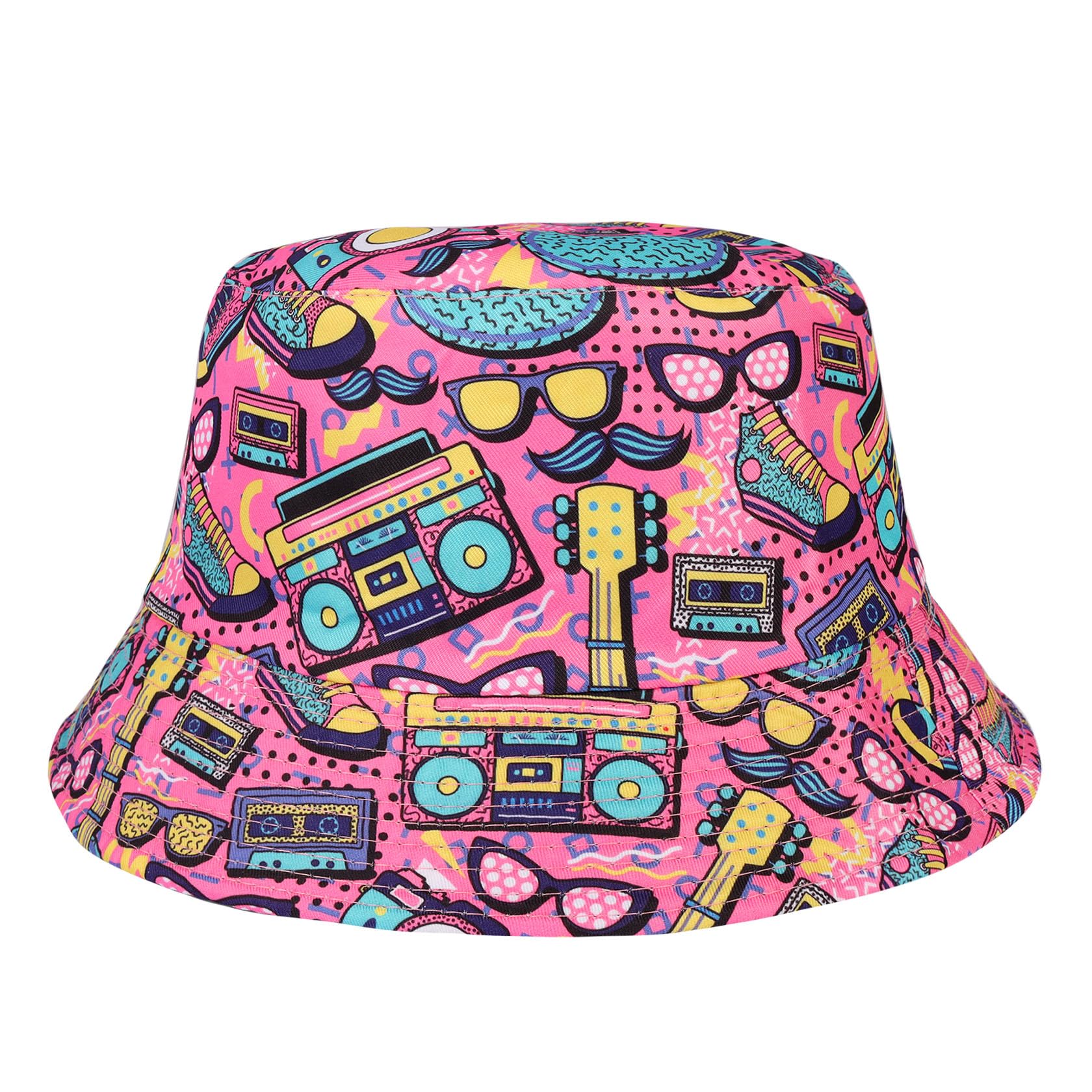 JAZTAKU Retro 80 90s Bucket Hat for Women Men Fashion Fisherman Hat Packable Outdoor Rave Accessories Fisherman Hat|Clothing