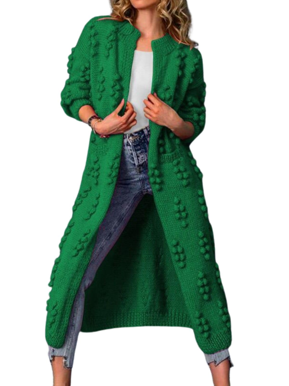 DMOYALA Long Open Front Sweaters for Women Oversized Knit Long Sleeve Maxi Cardigan Sweaters Popcorn Sweater Cardigan Loose Trench Coat,Green,S|Clothing