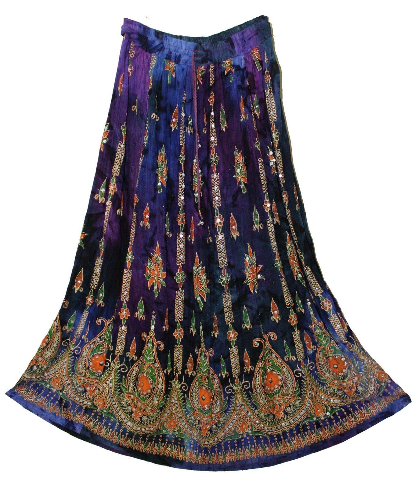 Fashion of India Women's Long Bohemian Maxi Skirt - Gypsy Hippie Boho Chic Style Dress - Up to 6 Feet Tall Girl - Blue & Orange|Clothing