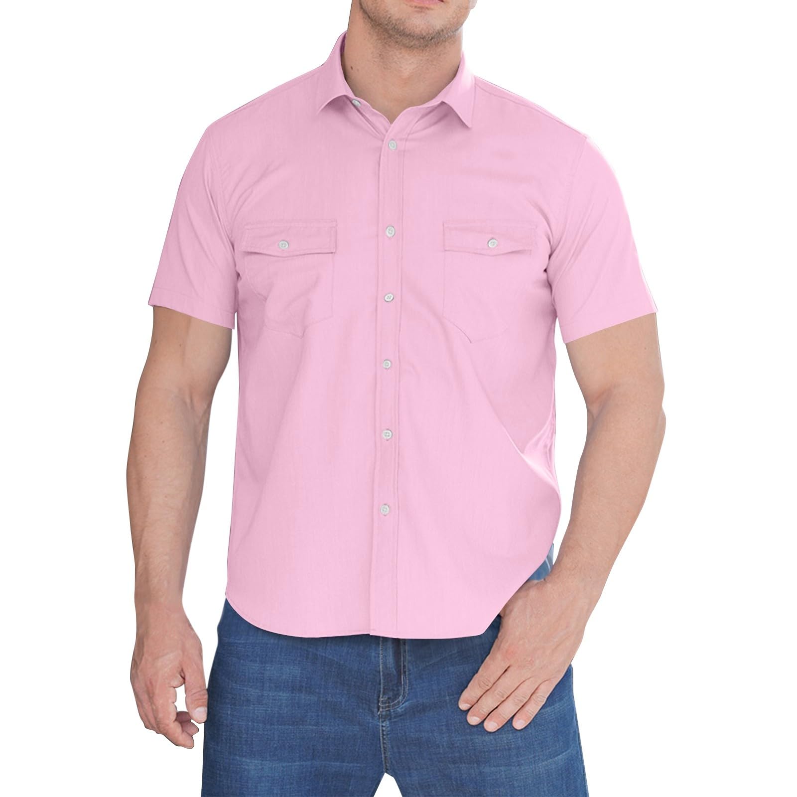 RTRDE Men's Summer Button Up Shirt Short Sleeve Solid Color Casual Work Shirts with Pockets Button Down Shirts, M-6XL|Clothing