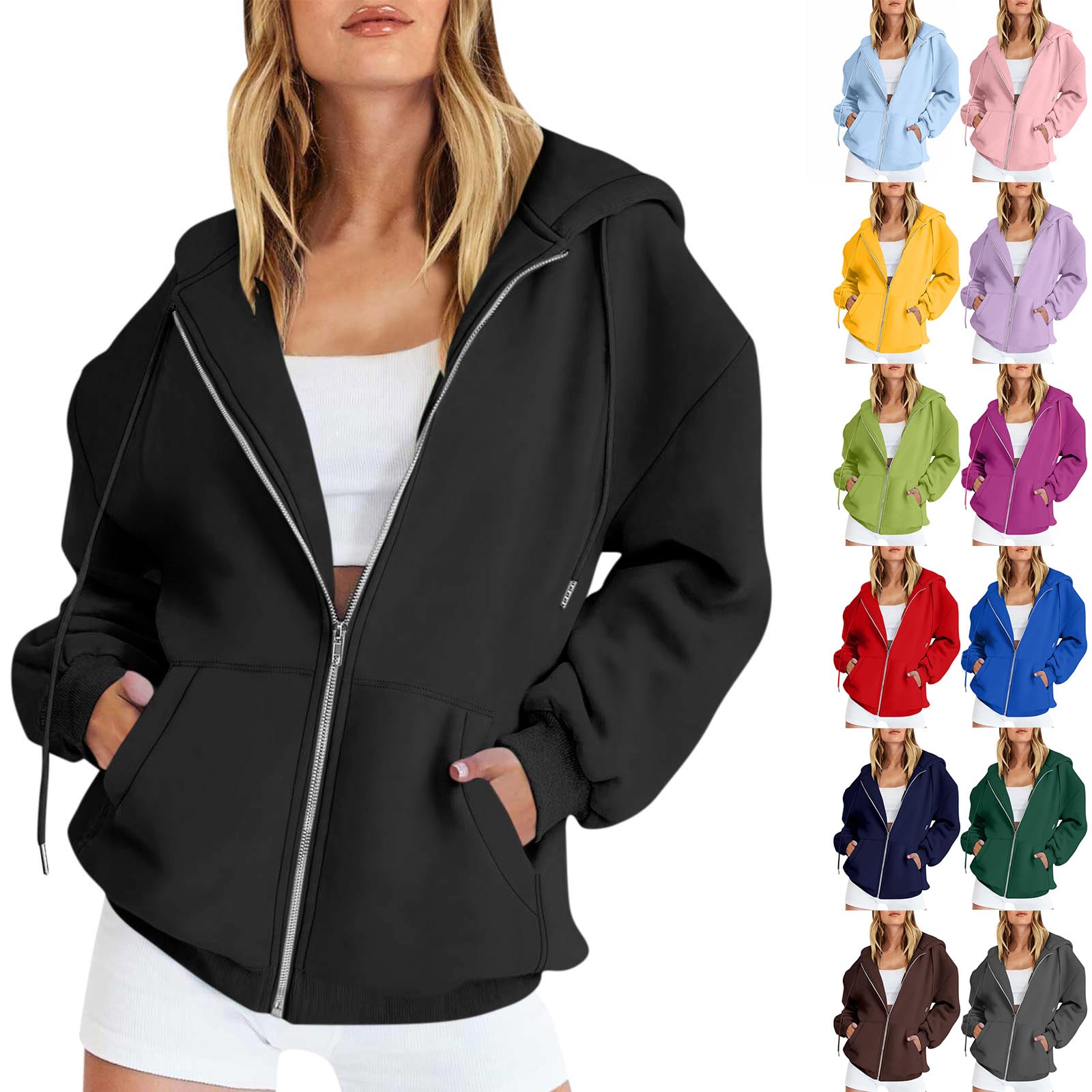 Rikbuig Zip Up Hoodie Women Plain Fleece Oversized Sweatshirt Hoodies Casual Drawstring Athletic Workout Jackets with Pockets|Clothing