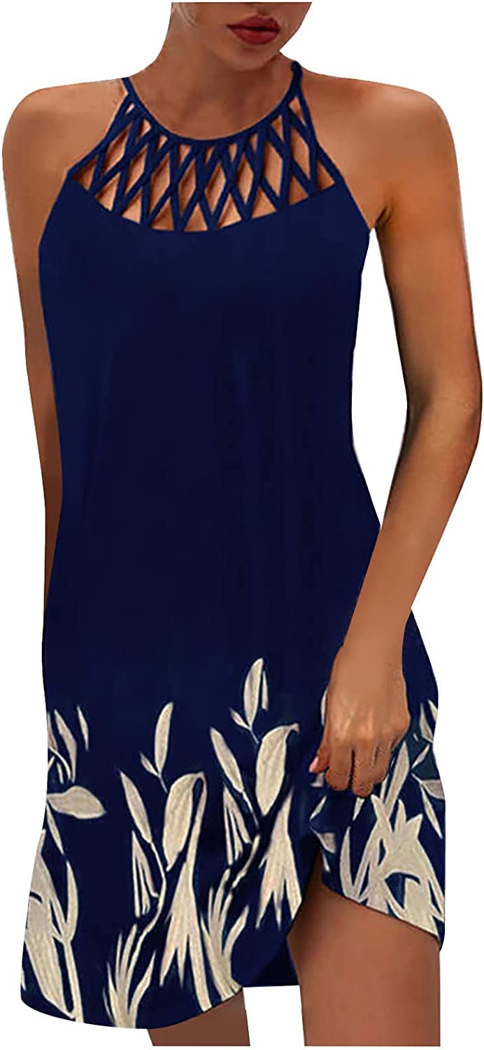 BIRW Summer Dresses for Women 2026 Casual Floral Halter Neck A-line Beach Vacation Sundresses|Clothing