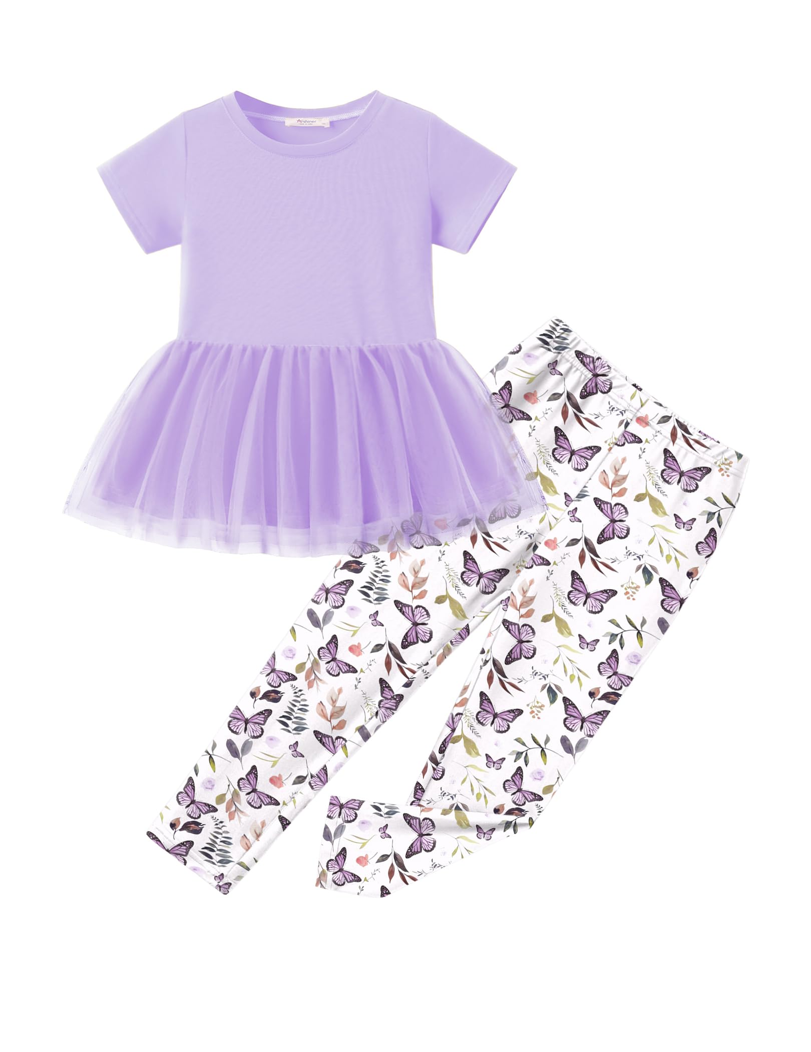 Arshiner Girls 2 Piece Outfits Casual Clothing Sets Short Sleeve Mesh Hem Roundneck Tops and Leggings Pants 2-10 Years|Clothing