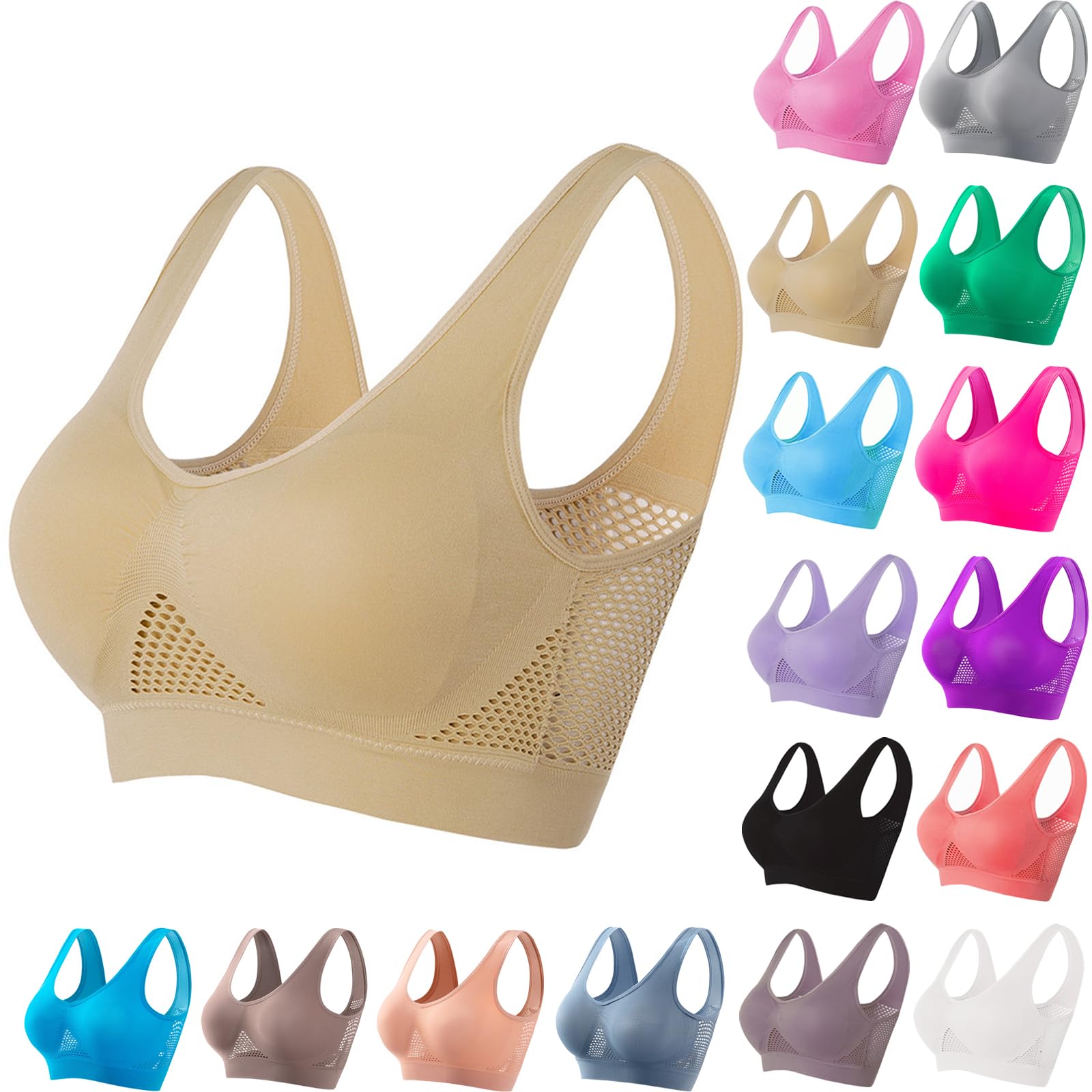 Breathable Anti-Sagging Sports Bra for Women Plus Size Wireless Bras with Cooling Lift-Up Air Tech Mesh High Support|Clothing