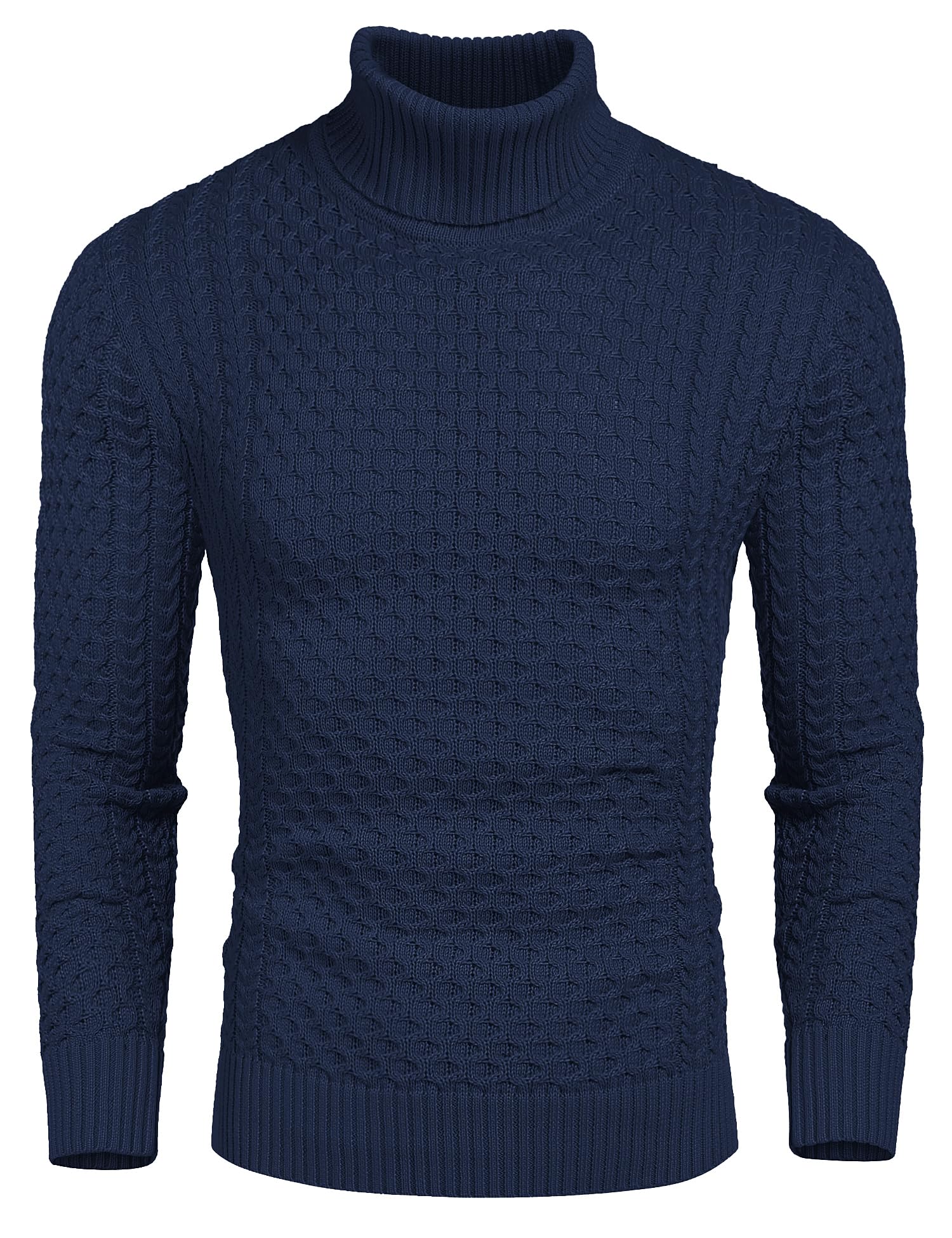 COOFANDY Men's Slim Fit Turtleneck Sweater Casual Knitted Twisted Pullover Solid Sweaters|Clothing