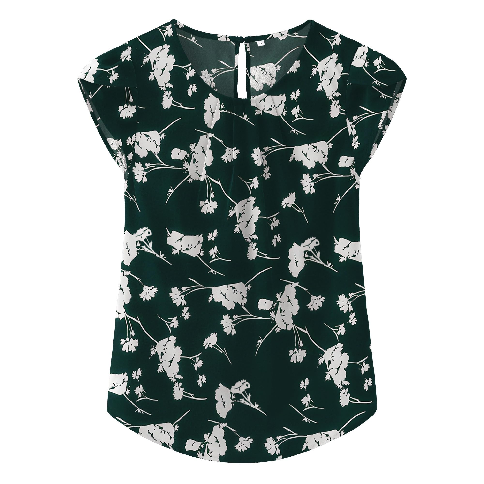 TASAMO Women's Casual Round Neck Basic Pleated Top Cap Sleeve Curved Keyhole Back Chiffon Blouse|Clothing
