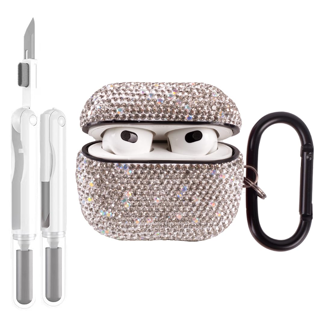 for AirPods 3 Case Cover with Cleaner Kit,Bling Diamond Protective Case for Apple AirPod 3nd Generation Case for Women Men (White AB for 3th)|Electronics