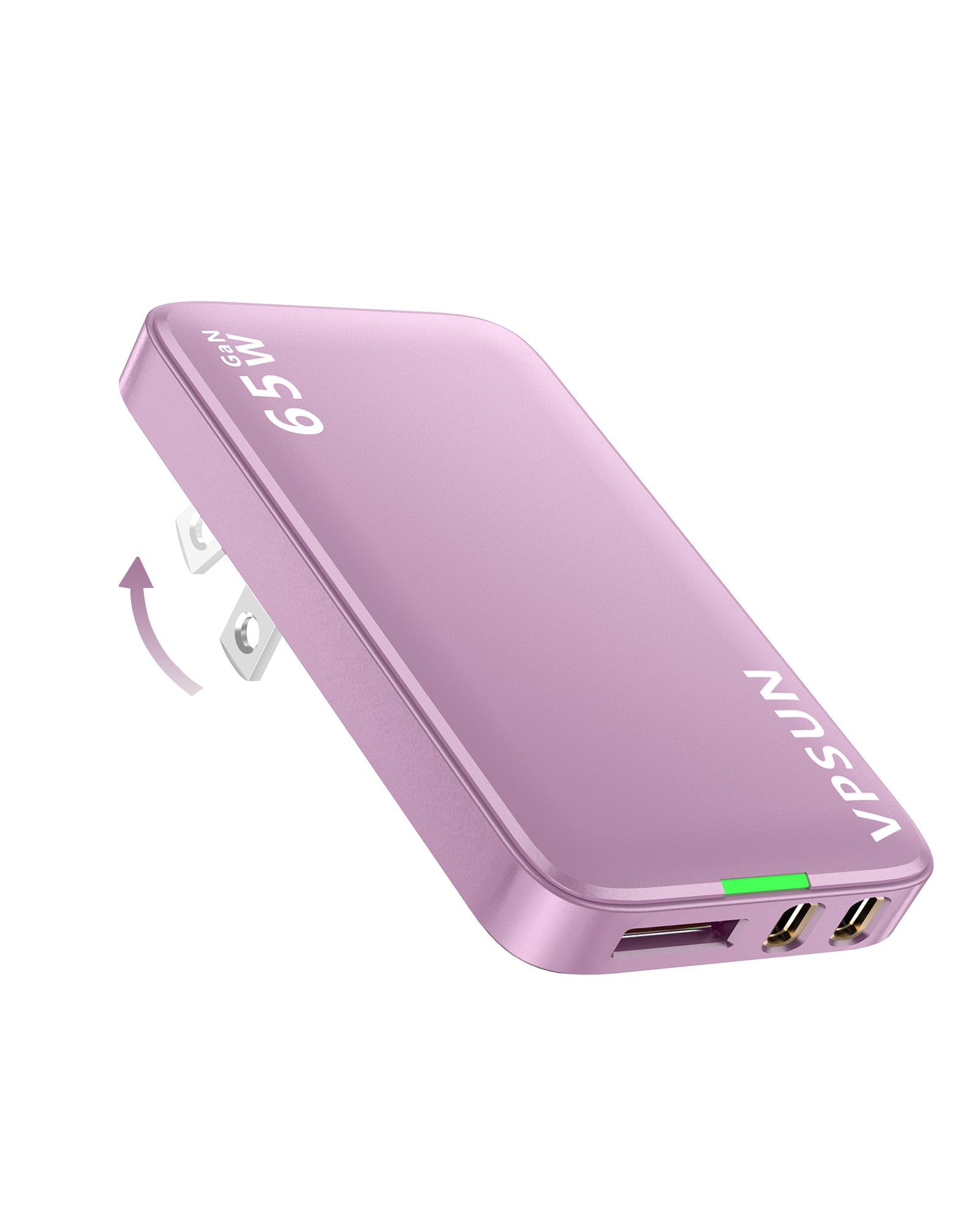 65W GaN USB C Wall Charger Block,3 Port Ultra Thin Flat USB-C Charging Plug,Foldable USB Power Adapter for MacBook,iPhone 15/16,Samsung (Pink)|Electronics