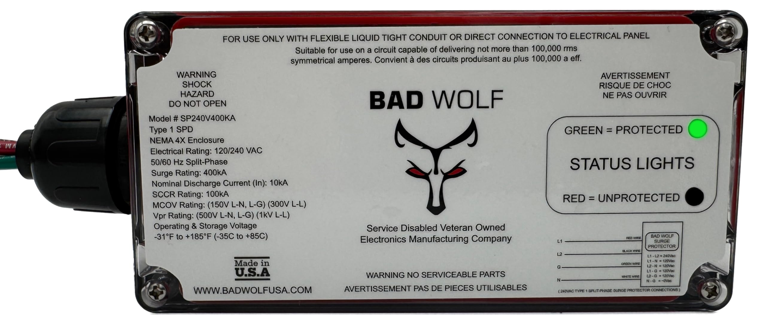 Bad Wolf SP240V400KA Whole House Surge Protector ETL Listed Type 1 SPD, 400kA, 120/240V Split Phase, NEMA 4X, with EM Protection|Electronics