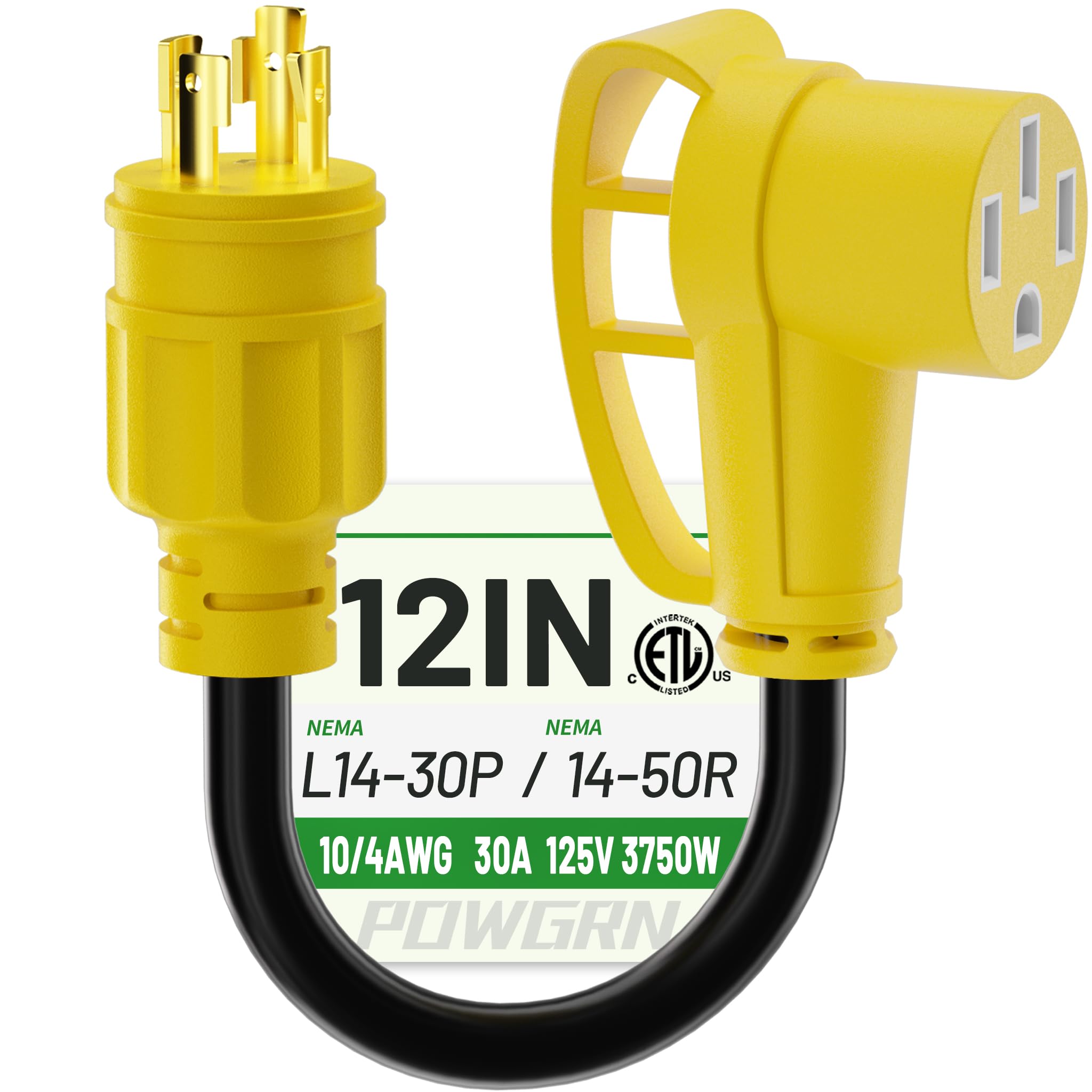 POWGRN 30 Amp to 50 Amp RV Generator Adapter Cord 1FT(12 Inch), NEMA L14-30 Male Plug to NEMA 14-50 Female Plug, 4 Prong Heavy Duty Power Cord, 10|Electronics