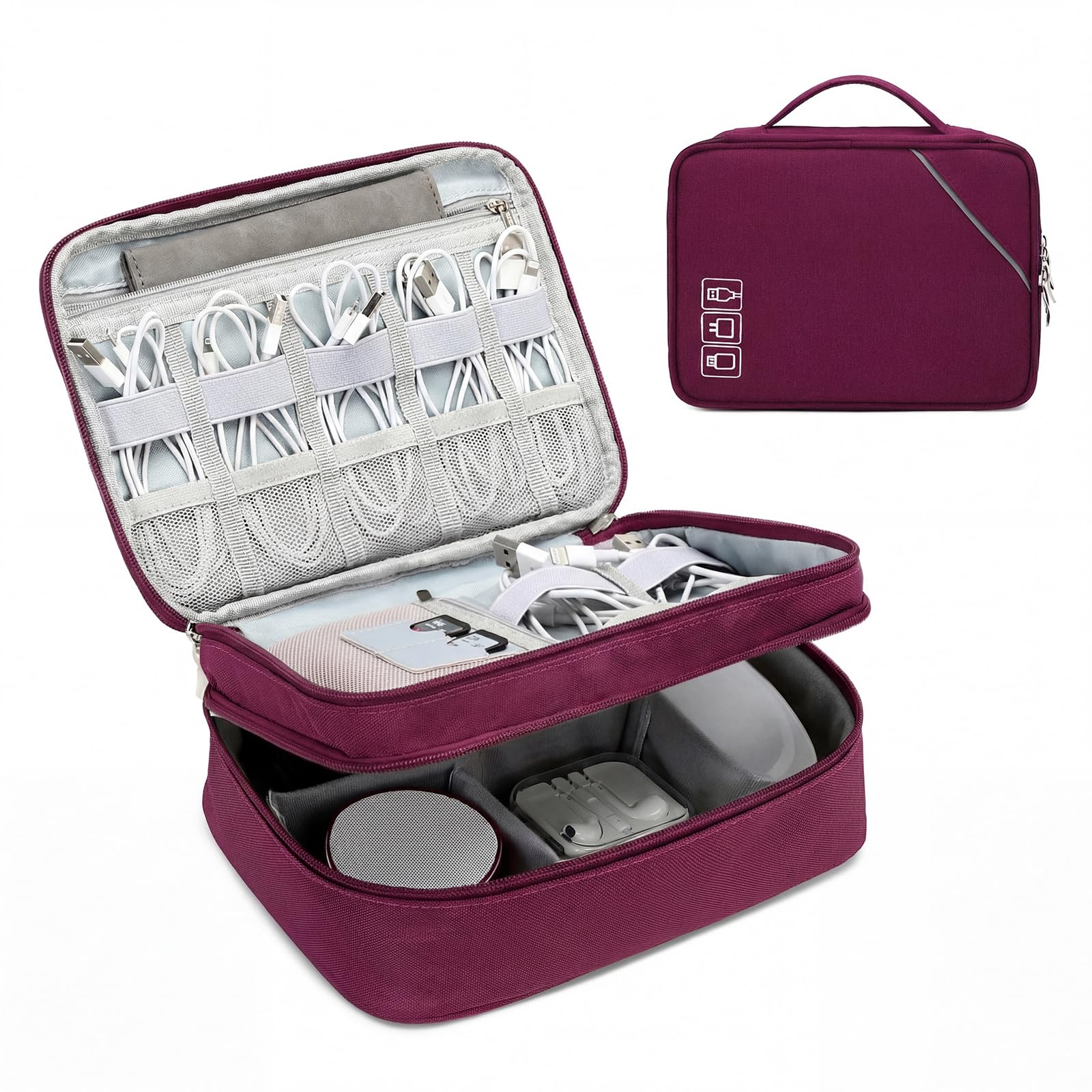 Lanola Electronic Organizer Travel Double Layer Cable Organizer Bag,Accessory Bag for Hard Drives,Cables,USB,SD Card,Memory Cards,Flash Drive,etc. -|Electronics