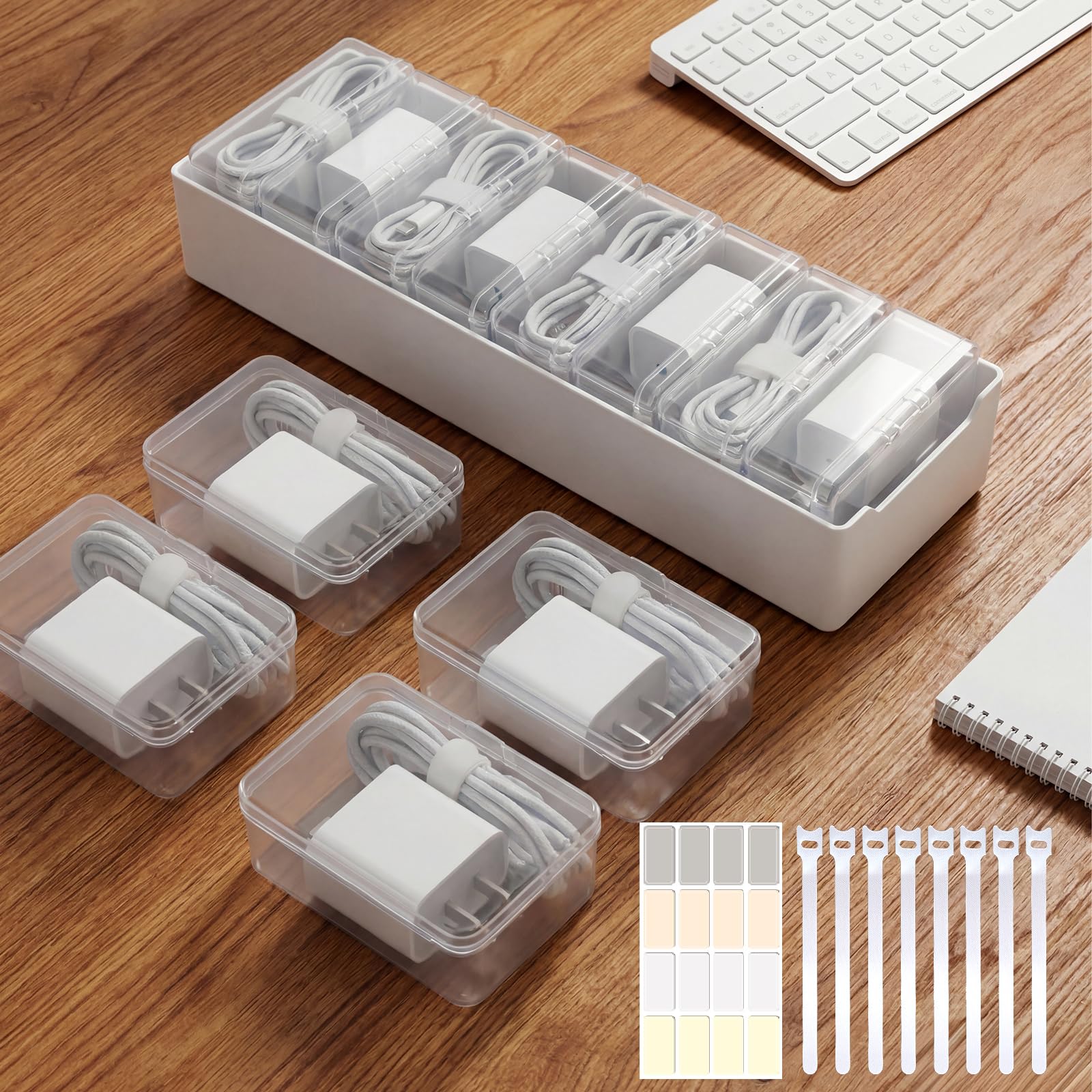 Alouxop 8 Individual Cable Organizer Boxes With Base, Cord Storage Organizer With Labels And Cable Straps For Charging Cables, Adapters, Earphones And|Electronics