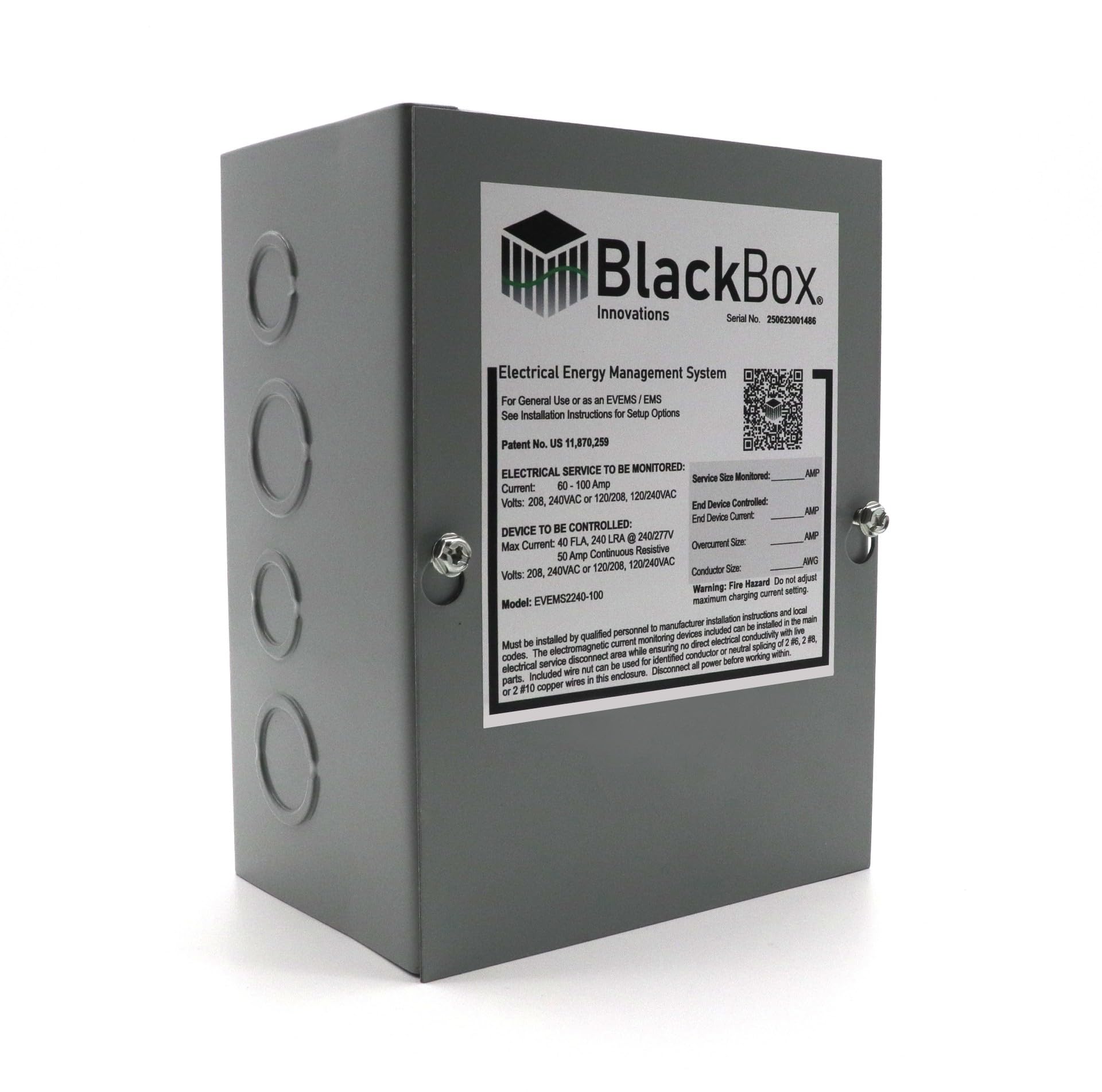 EV Charger BLACKBOX 240V NEMA 3R 60-100A Service Size Weatherproof - No Electrical Panel or Service Upgrade Required Allows 240 Volt up to 60Amp EV|Electronics