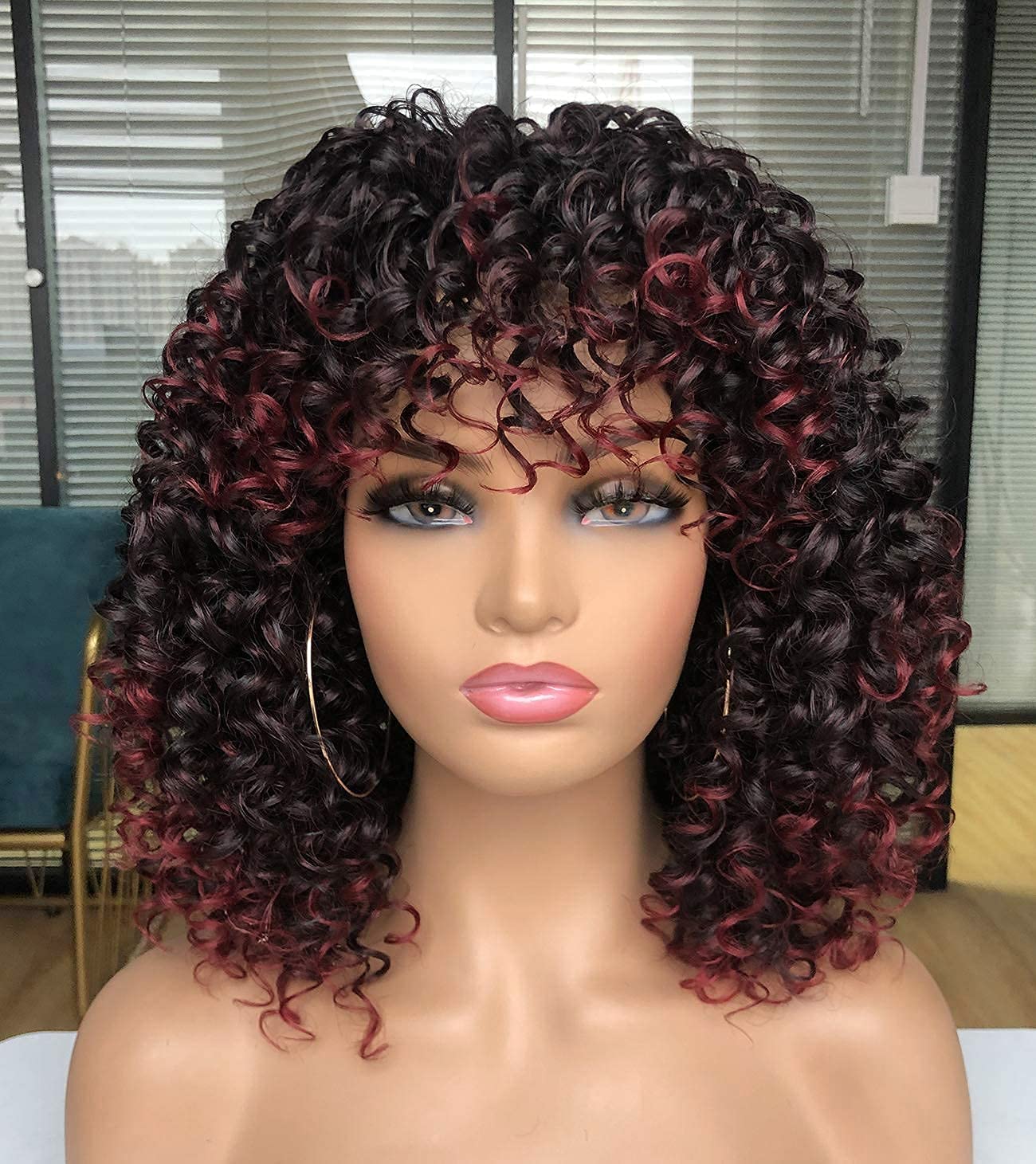 GEMBON Curly Afro Wigs for Black Women Kinky Curly Wig with Bangs Synthetic Fiber Natural Looking Glueless Hair for Daily Wear|Health & Beauty