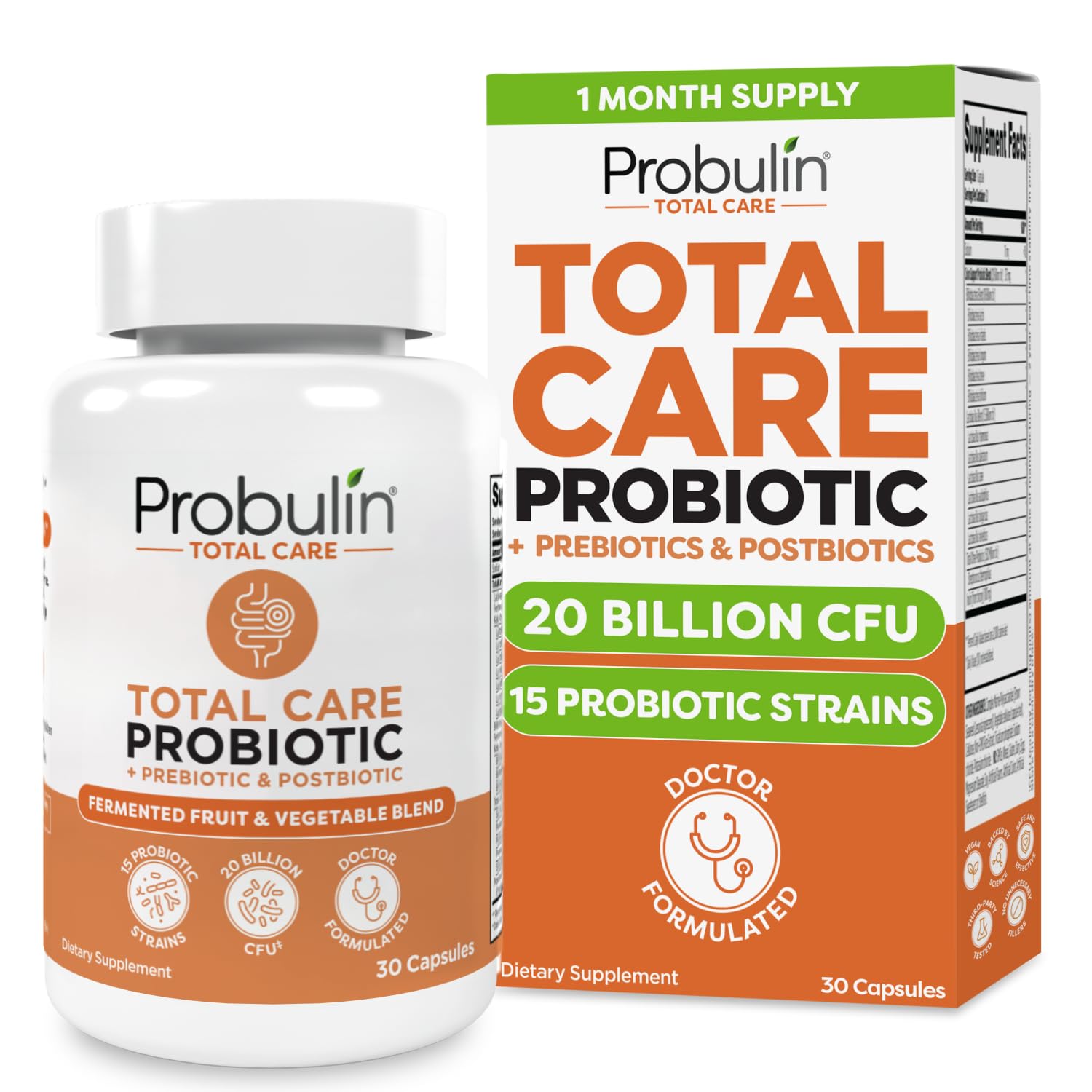 Probulin Total Care Probiotic Supplement, Daily Gut, Digestive, and Immune Health Probiotics Capsules for Men and Women, 20 Billion CFU, Vegan, 30|Health & Beauty