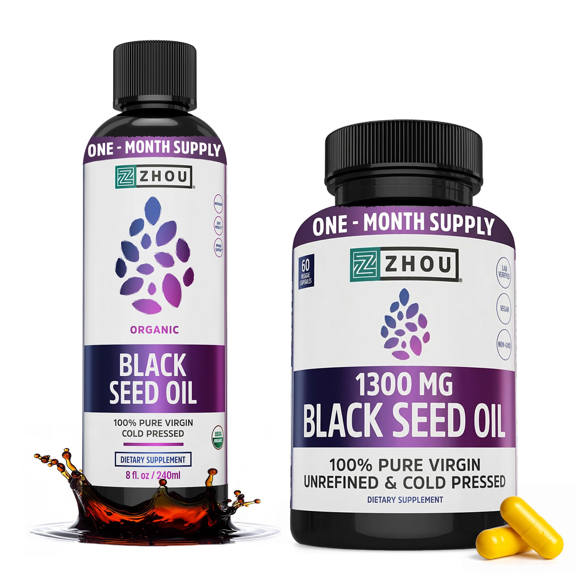 ZHOU Black Seed Oil & Capsules - Black Cumin Seed Oil Cold Pressed, Pure Unrefined Nigella Sativa, Premium Supplement for Health, Hair & Skin - 8 fl|Health & Beauty