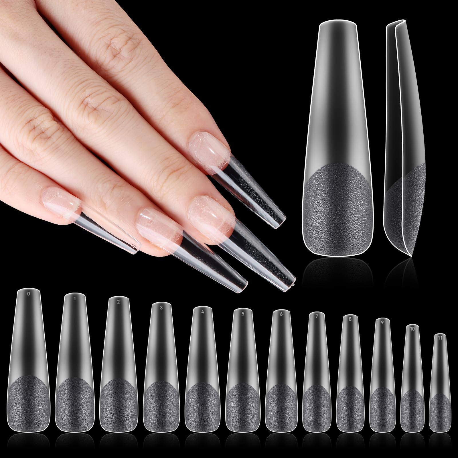 INENK Flattened No C Curve, XXL Coffin Nail Tips, Half Matte Clear Half Cover Coffin Flat Tips for Acrylic Nails Salons Home DIY Extensions(12 Sizes|Health & Beauty