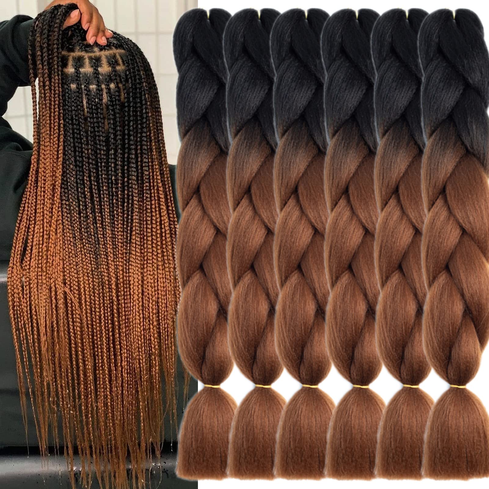 TENGSHUO FLY Black to Dark Brown Braiding Hair 6 Packs Synthetic Braid Hair Extensions Jumbo Ombre Braiding Hair 24 Inch or Box Braids Twist Crochet|Health & Beauty