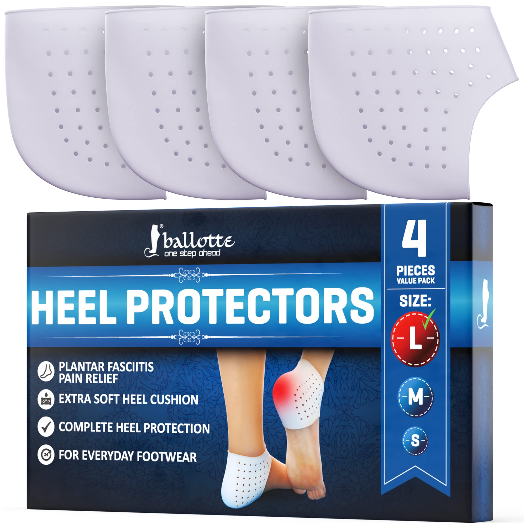 Ballotte Premium Silicone Heel Protectors for Shoes, Gel Heel Cups & Cushion Inserts for Women & Men, Cushioned Sole Cups for Plantar Fasciitis for|Health & Beauty