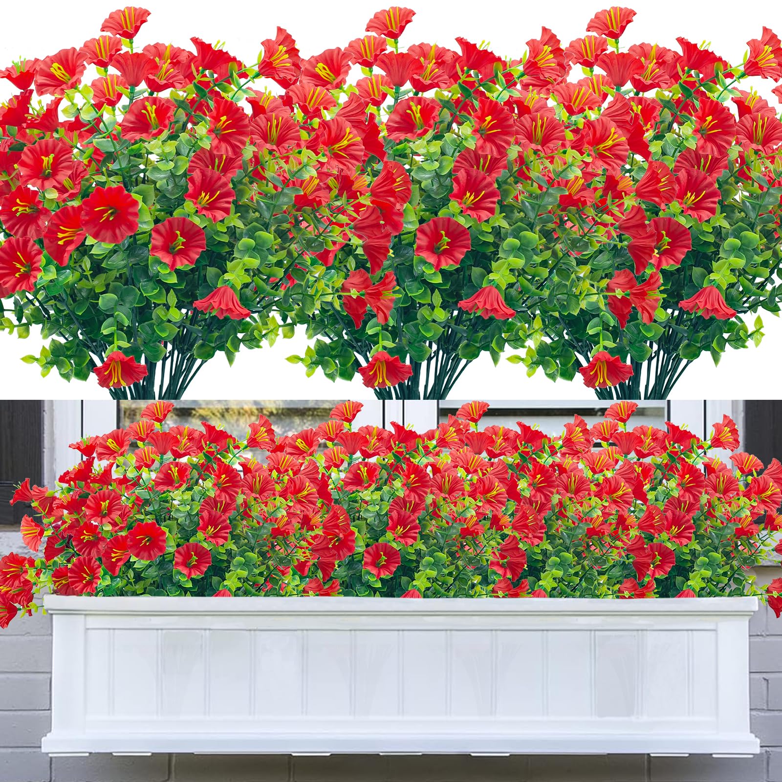 DRT DERUITAI 8 Bundles Artificial Flowers for Outdoors,UV Resistant Fake Outdoor Flowers,Faux Plastic Shrubs for Outside Indoor Home Décor(Red)|Home & Garden