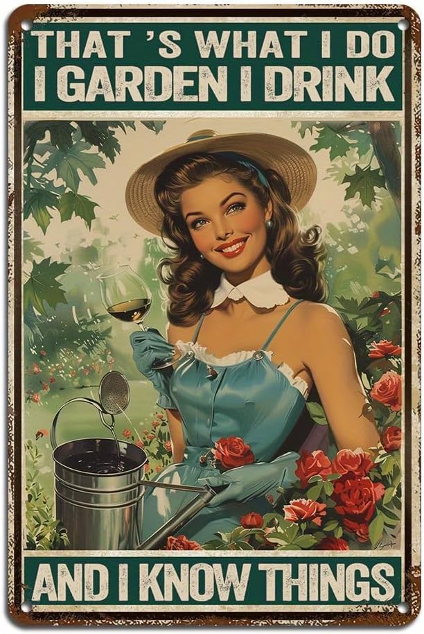 Vintage Metal Tin Sign – “I Garden, I Drink and I Know Things” Quote – 8x12 Inch Rustic Wall Decor for Porch, Garage, Home, Café, Bar, Club, Farm or|Home & Garden