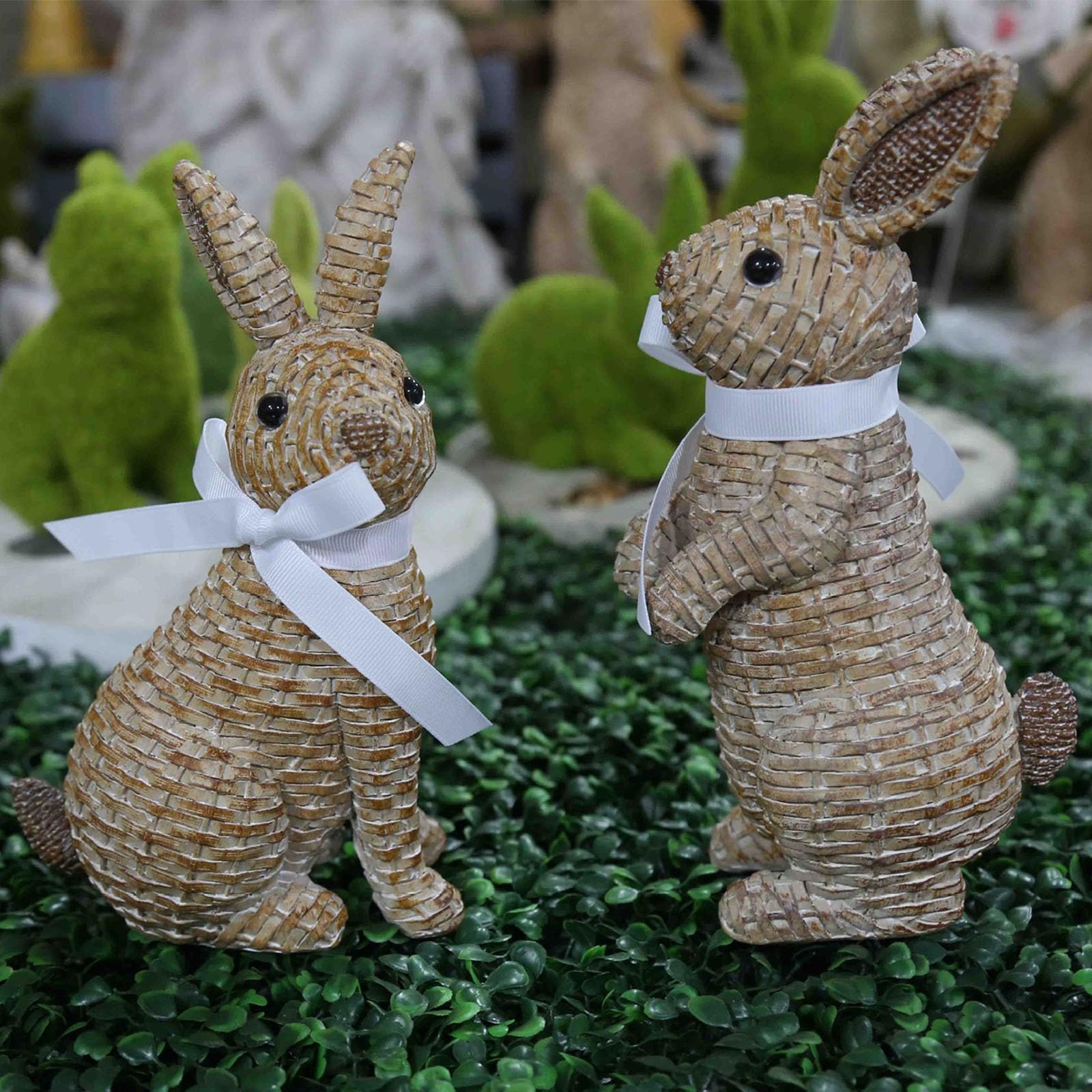 2PCS Rattan Effect Resin Rabbit Easter Decorations,Bunny Easter Ornaments,Outdoor Garden Statue Animals Figurine for Home Farmhouse Courtyard Lawn|Home & Garden
