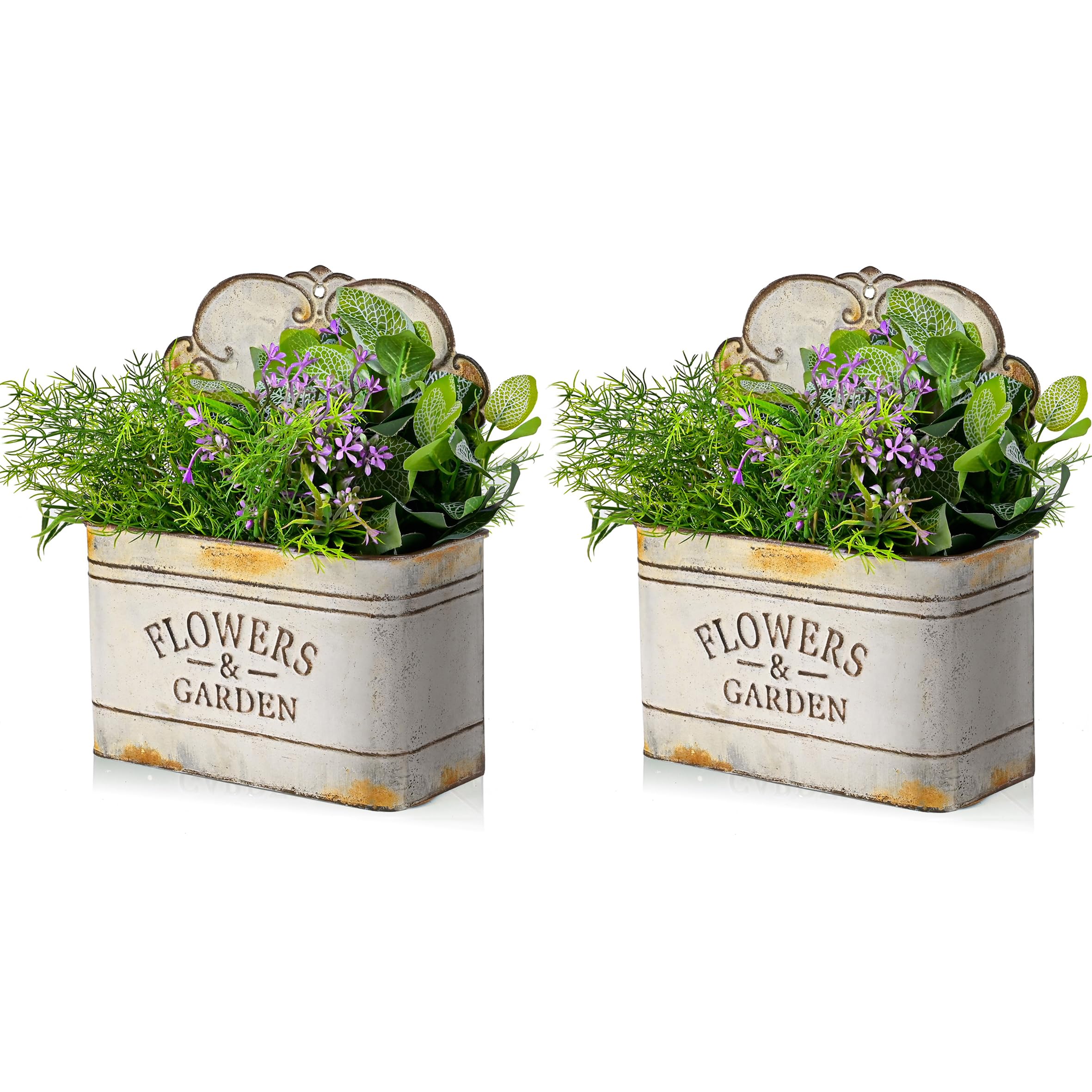 CVHOMEDECO. Farmhouse Metal Wall Planter Rustic Galvanized Flower Holder Wall Mount Flower pots for Indoor, Outdoor and Wall Decor, Set of 2 (Grey)|Home & Garden