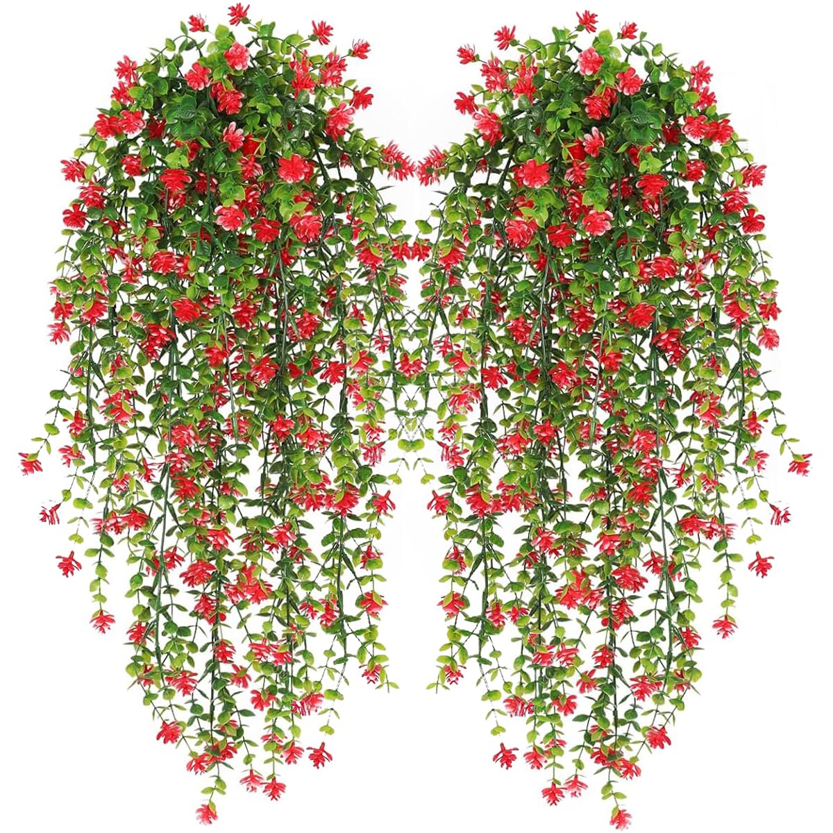 WEISPARK Artificial Hanging Flowers, 4pcs Fake Eucalyptus Vine Faux Flower Greenery Garland Plastic Plants for Indoor Outdoor Wall Garden Wedding Home|Home & Garden